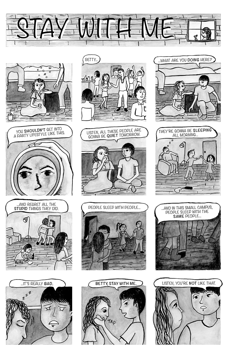 Original comic- short love story about college parties and love triangle.