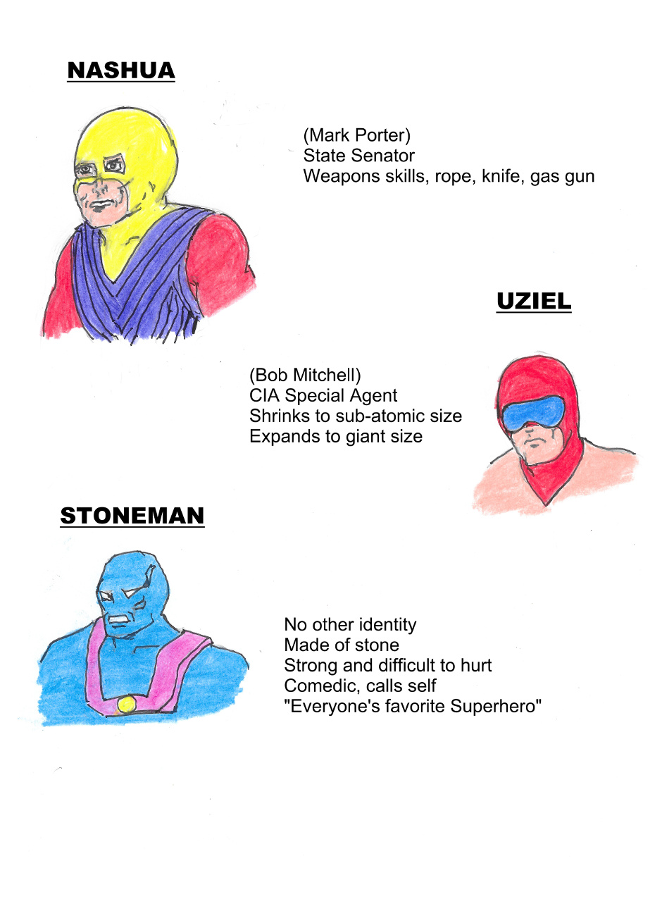 I have been drawing and writing my own comics since the 60's and decided to scan them and put them up here for everyone to enjoy. The majority of the characters were created as a kid but the stories themselves range from then until now. The first few postings will be brief character biographies leading into one of the more recently created works. Some of the characters creation can also be credited to my brother or shared between the two of us.