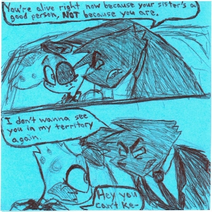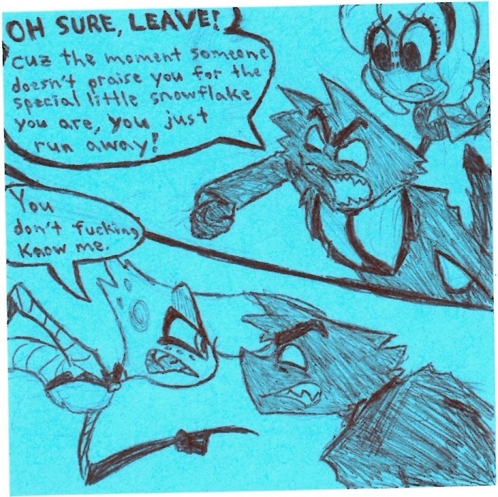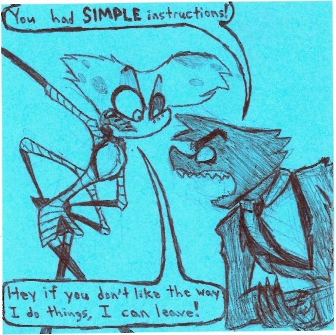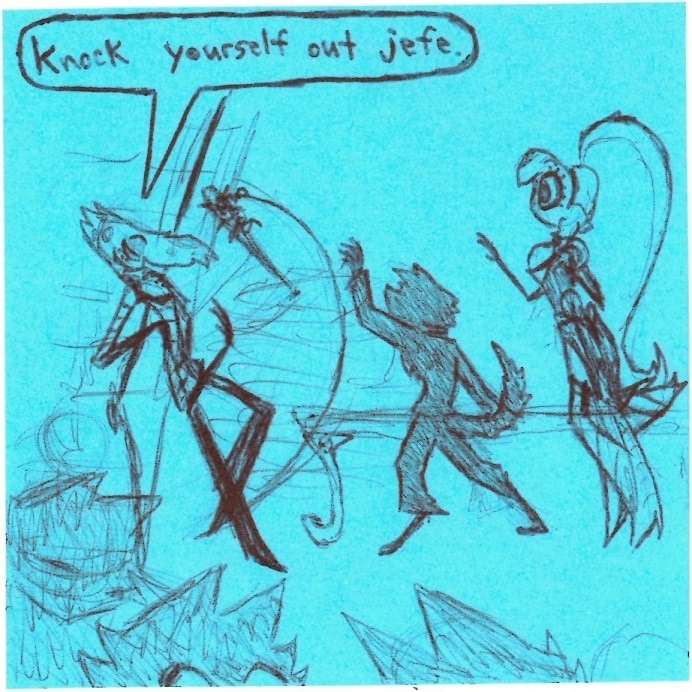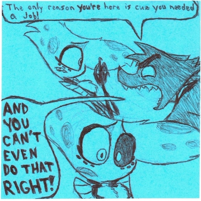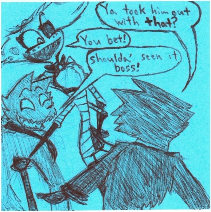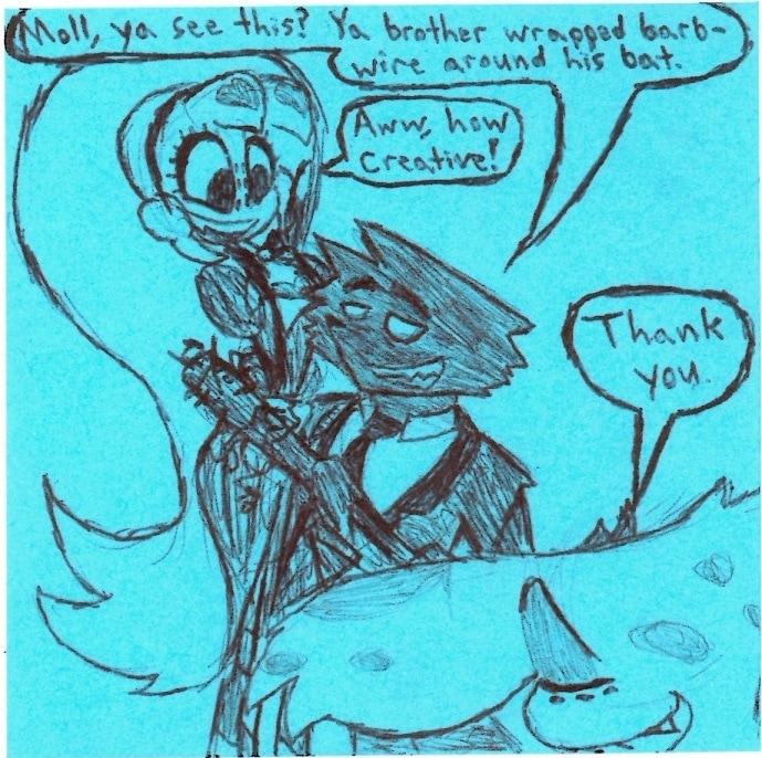 I feel a bit weird putting this comic before Molly and Boss are introduced in the Relapse animatic but it DID set up a very important dynamic between Angel, Boss, and Molly AND it was made before Relapse so I guess it's a good fit here. ^w^