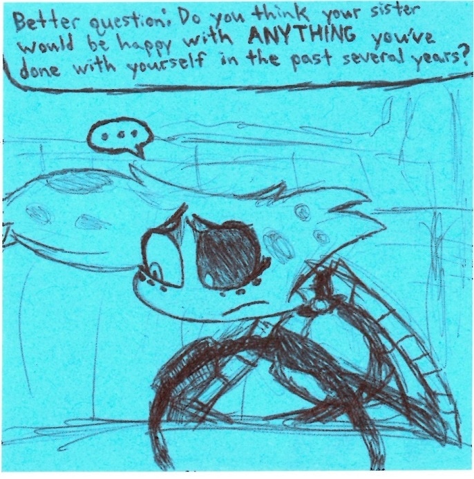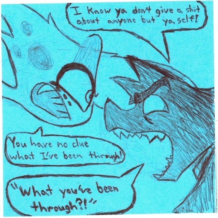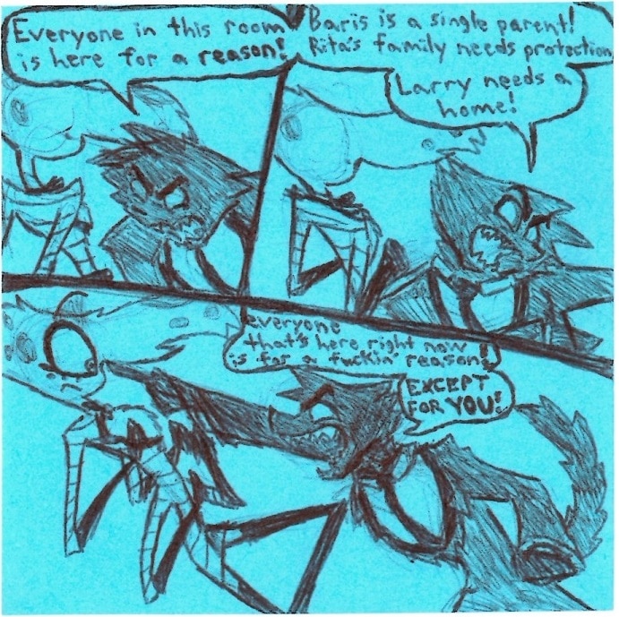This was almost sort of a season finale before Viv gave me approval to create an ongoing fan comic. It's weird looking at Boss/Dominic here since his design was still sort of evolving. Now he kinda just looks like me but with a snout. Also I think this is the only comic I ever drew Angel with only 4 arms in since he got another design revamp around this time.