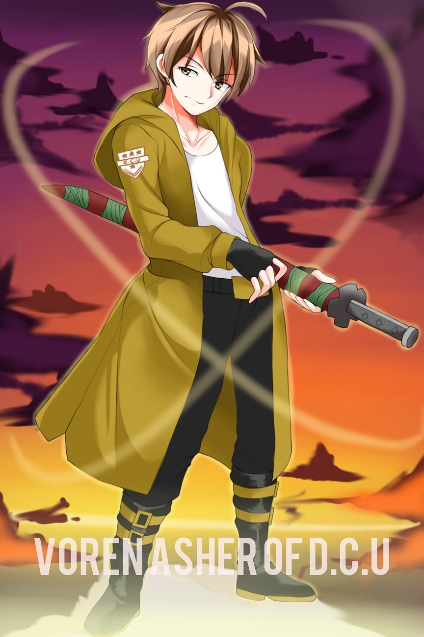 Name: Voren Asher Age: 15 Hometown: Seattle, WA Rank: Private Operatives: 2nd class Operatives Weapon: Beretta M9 handgun and sword Power: The ability of enhanced processing and quick reaction. Base: Fort. Lockhart-Eastern Front Unit: 6th Scout Corp, 4th Squad "Black Bulls"