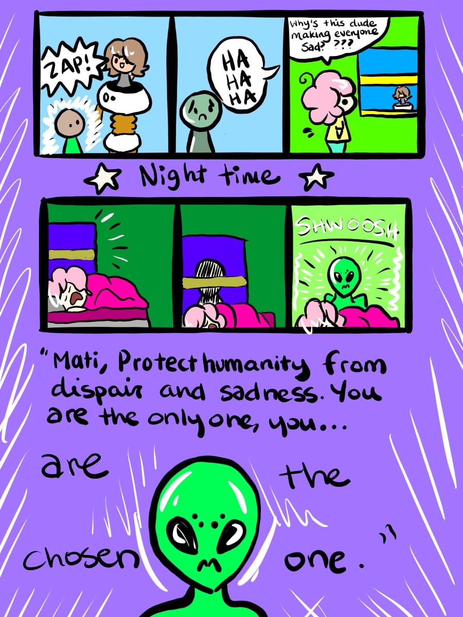 When Paul the evil genius starts to engulf the town in complete sadness, there's only one person the townspeople turn to. After getting superpowers & gadgets from her two alien dads, Mati, the Superhero of Happiness & Rainbows is on a very important mission to make earth a better, peaceful place. Join Mati, as we see what brings her to being the ultimate superhero.