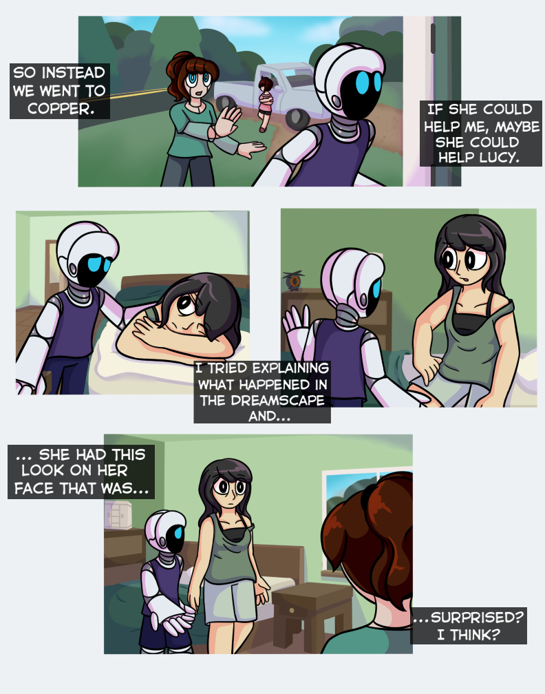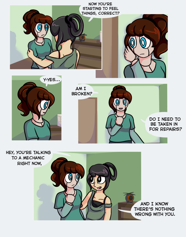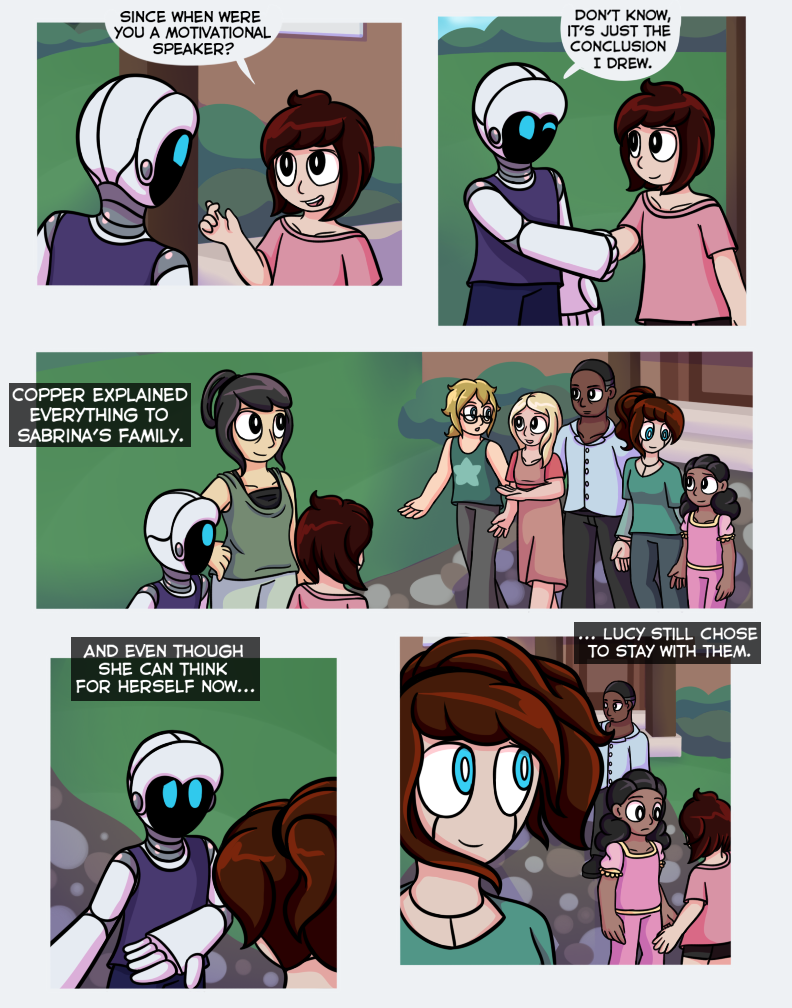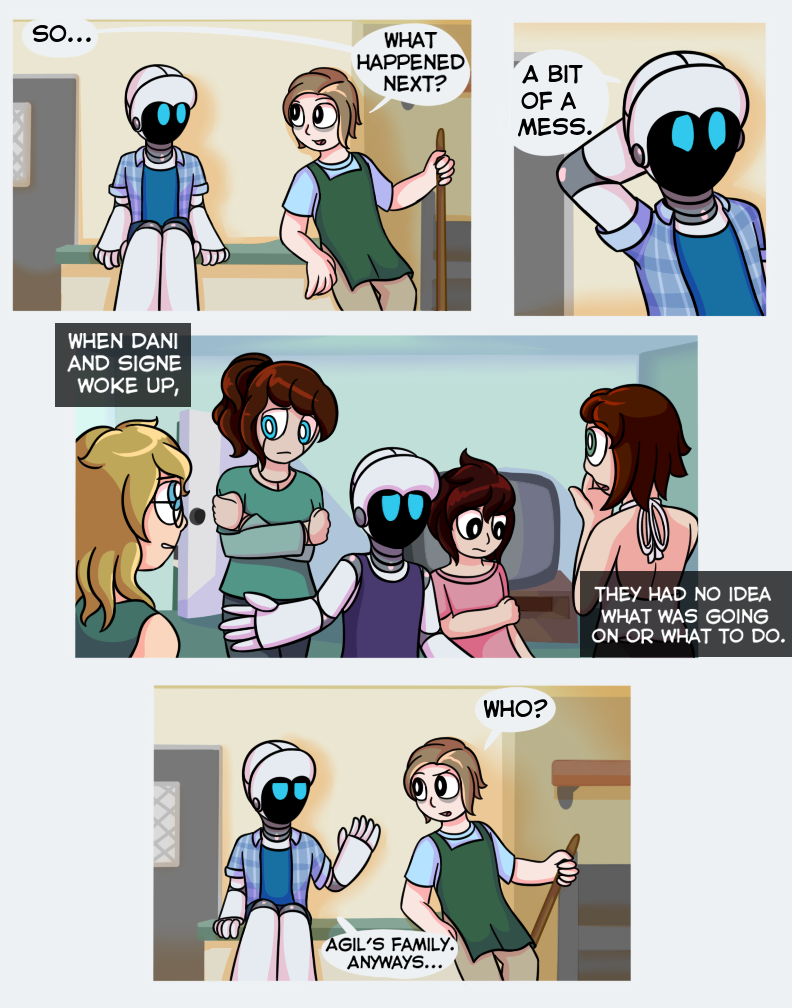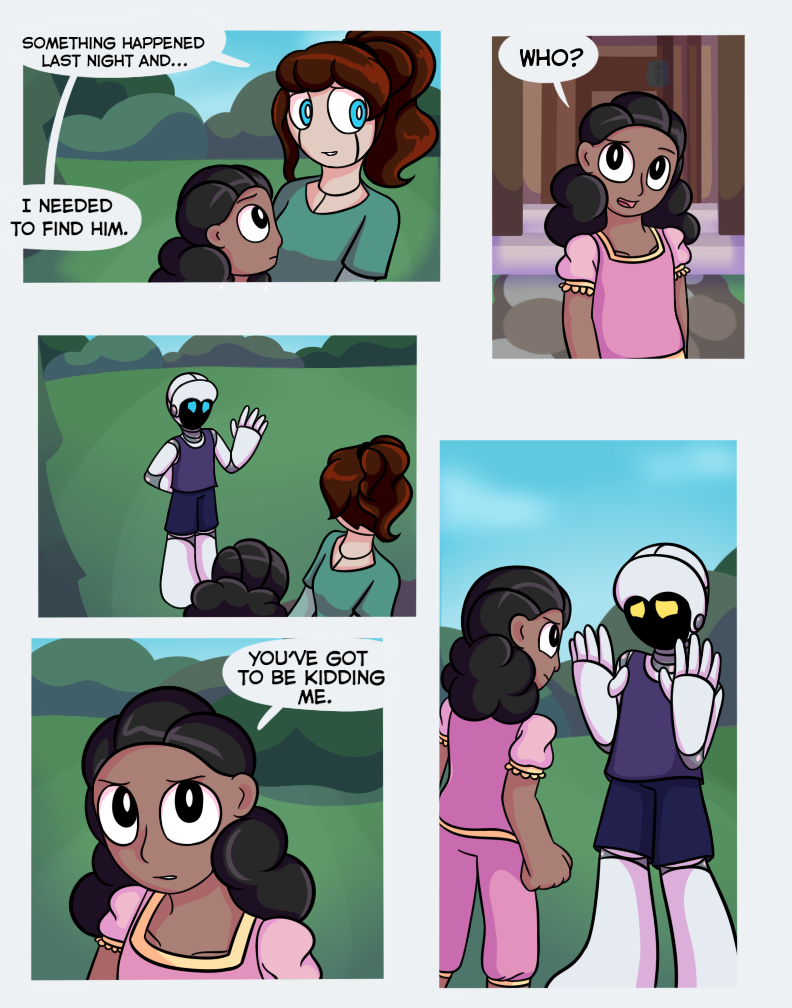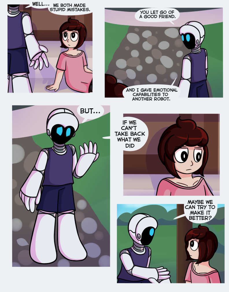 Oh jeez this cant be good. I don't know if I'm even a little right about this, but I think that robot that Pin saw when he was "dreaming" is trying to turn all robots sentient and take over, haha. It's a bit of a common theme so I don't think I'm correct, but even if I am, that would be really cool. :D So, anyways, I'm just wondering, this series is going to be continied, right?