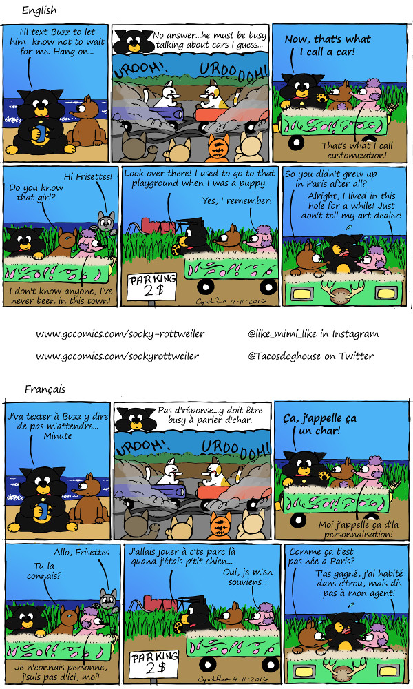 Mais l'auto de Frisettes, avec ses bois d'orignal à l'avant, son design vert et violet et du "minou" sur les bords vient tout droit de l'auto d'une connaissance aussi artiste qui a surnommé son auto "Bertha",