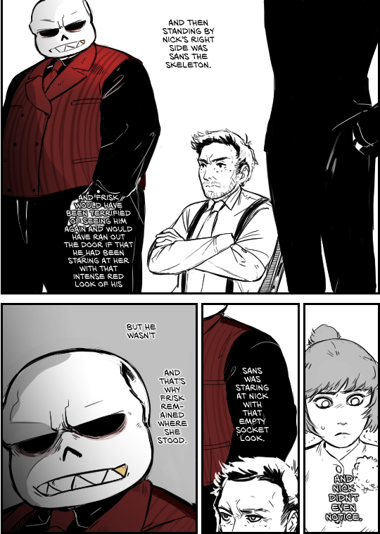 Frisk sang for a living. She sang in clubs that were populated by mobsters, murderers and the most violent criminals her city had to offer. She honestly thought things couldnât get any worse until corruption in the form of a grinning skeleton came strolling into her life. His name: Sans.