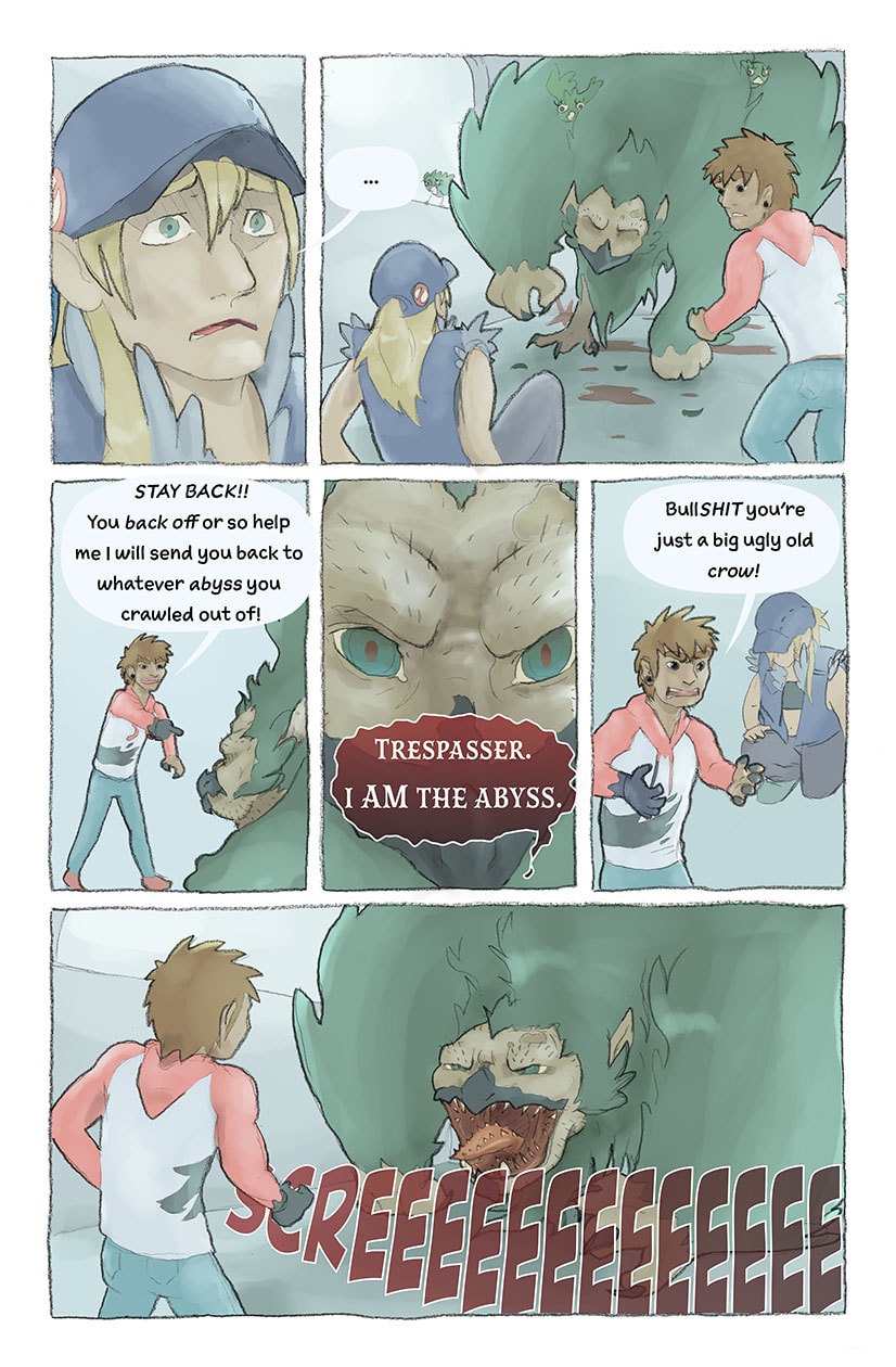 _____. is about a world much like our own that has collapsed on itself and become very strange and dangerous. Our three heroes have to find their way to safety while confronting an otherworldly villain and unraveling the mystery of the collapse. Updates Wednesdays - or see updates two days early, on Mondays, at www.nulimbo.com.