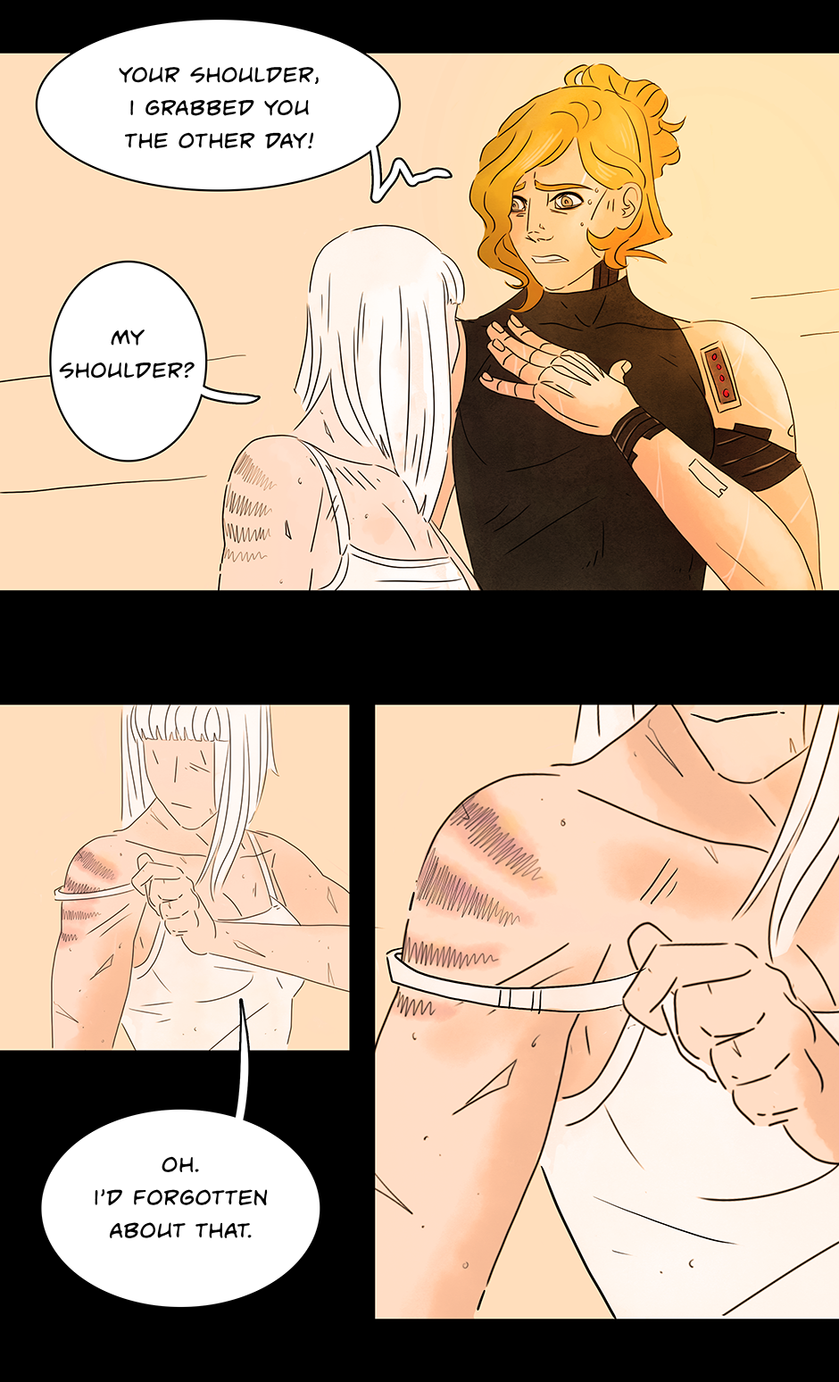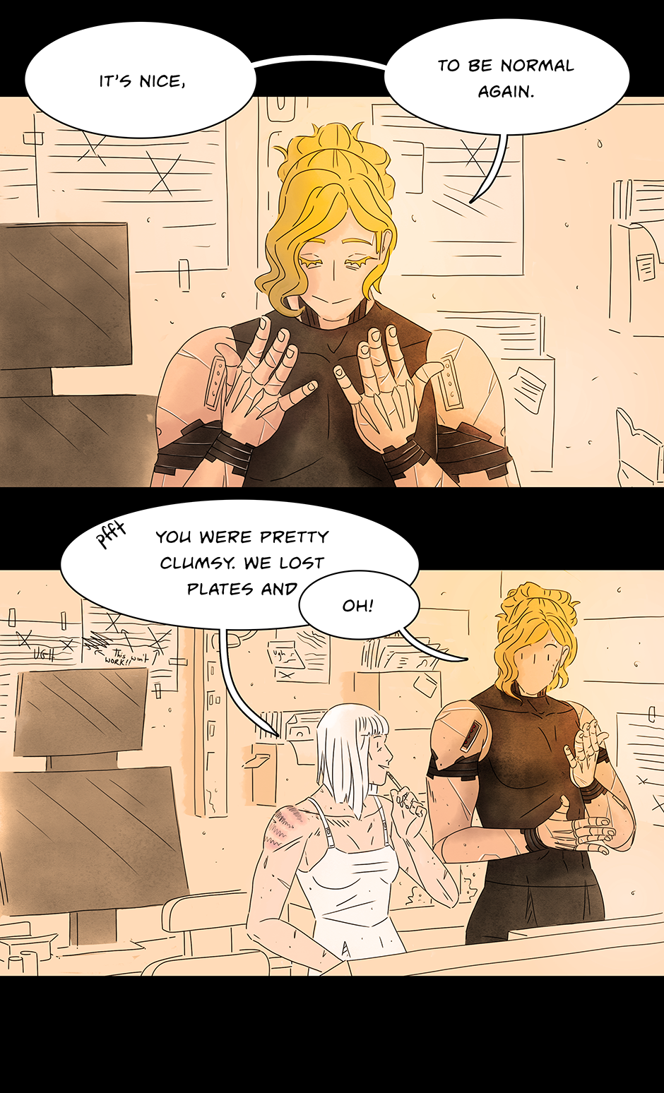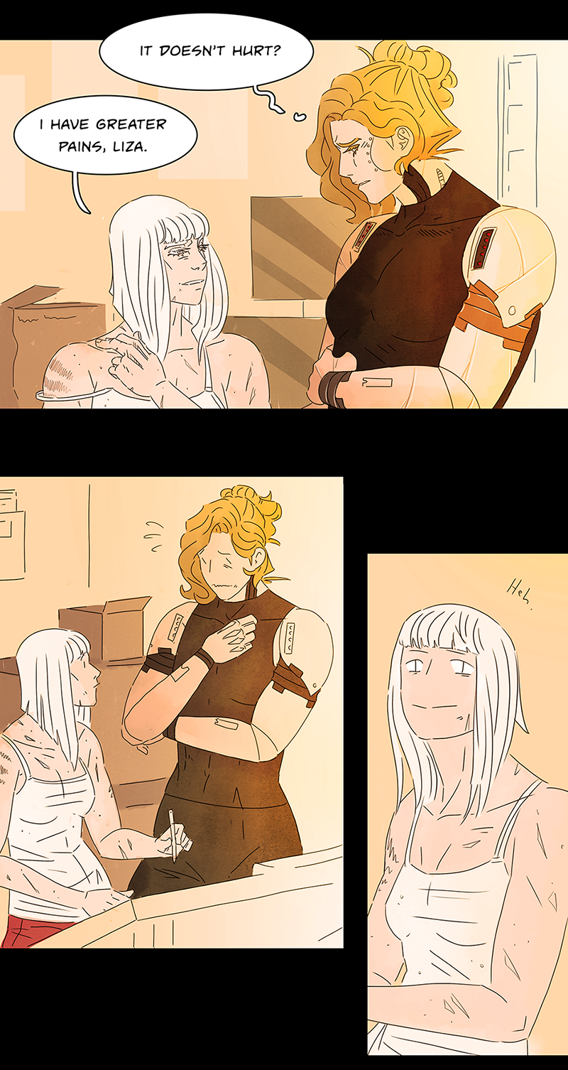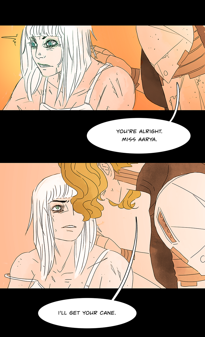 Lovely as always! I love how the background is in nice warm colors now because Liza and Aarya are together <3 oof but her arm ;-;