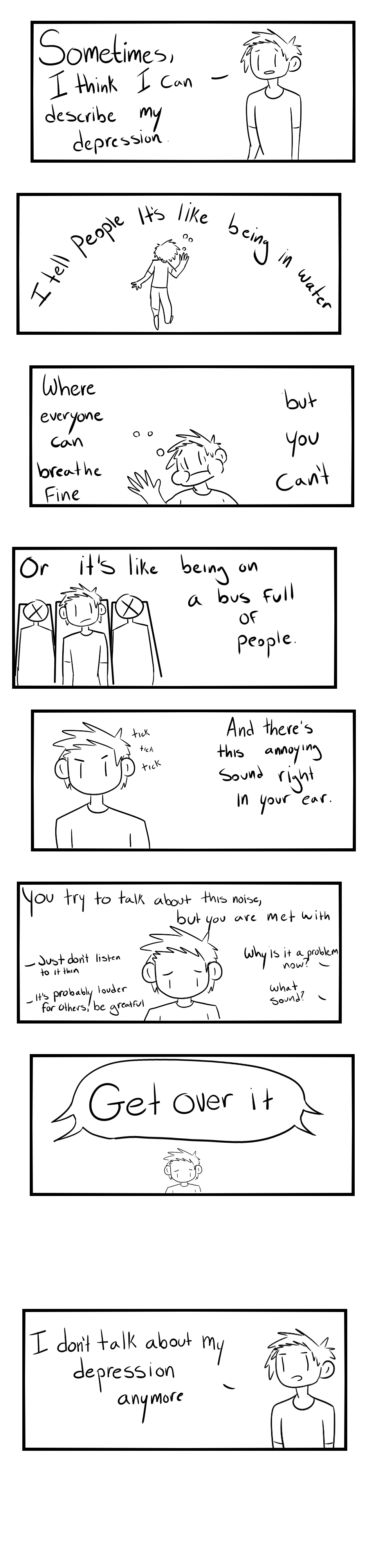 I always talk about my depression. Not because I want people to have pity for me, I hate being pitiful, but just because I think making depression a tabou is the reason why it's so badly understood. Don't stop or take yourself down because people around you don't understand. Remember there is people like you, who actually does cause they're living the same. Be strong dude.