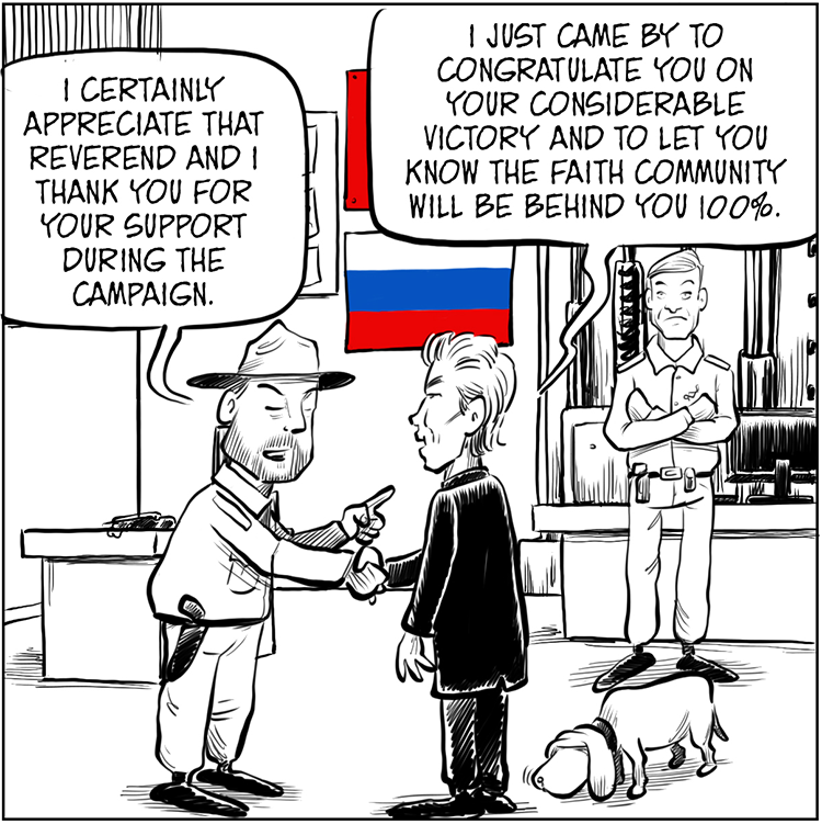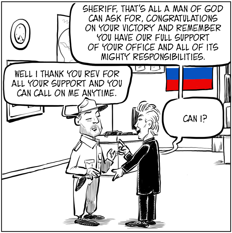 Sheriff Mac becomes closer to Mega Reverend McSwindle