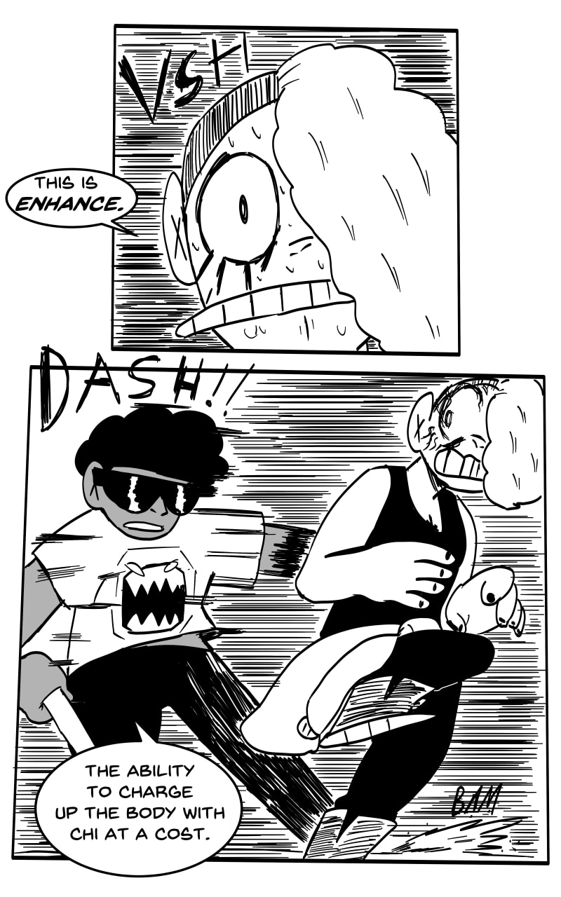 ENHANCE: By letting Chi flow rapidly through the body, physical abilities are pushed to their limits and allows to user to go beyond the capabilities of their body. However, it puts an immense amount of strain on the body and if the body can’t handle the how the Chi flows it will break down.