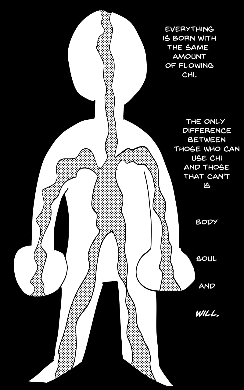 The Chi System works like this: Chi is the energy that flows through EVERYTHING, no being has more Chi or less Chi then another, all that differs is the way they can use it. It requires a strong mind, body and soul to use Chi. There are five ways to use Chi