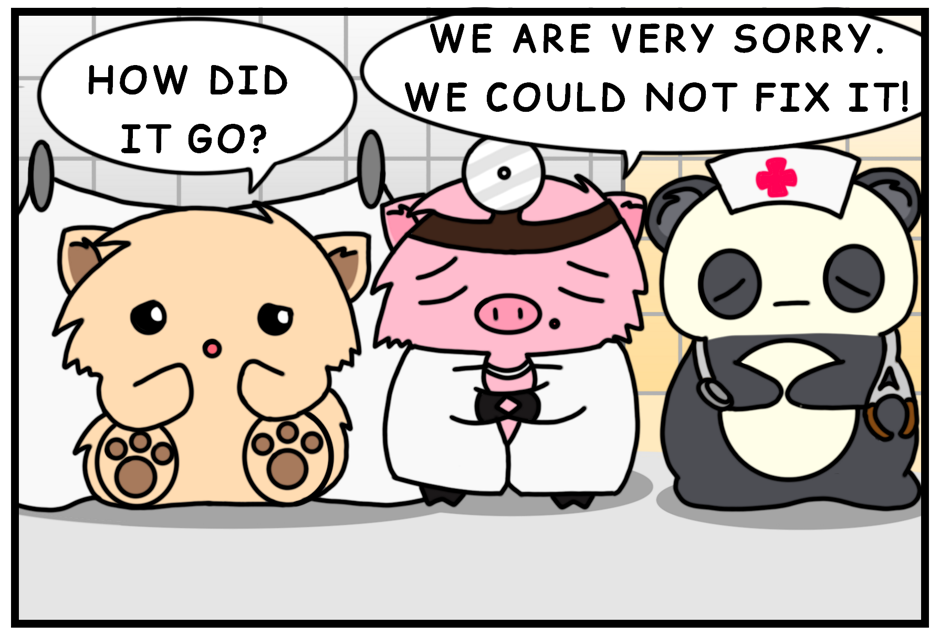 Oh, little kitten, our two... surgeons by chance succeeded in saving your tail... kind of.