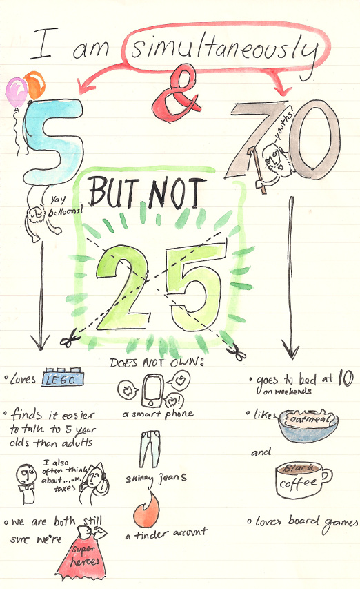 I am horrified by IRAs and tinder but I love Lego's and getting up early. I am certainly not qualified to be an adult. I am actually 25 years old but I feel more like 5 or 72.