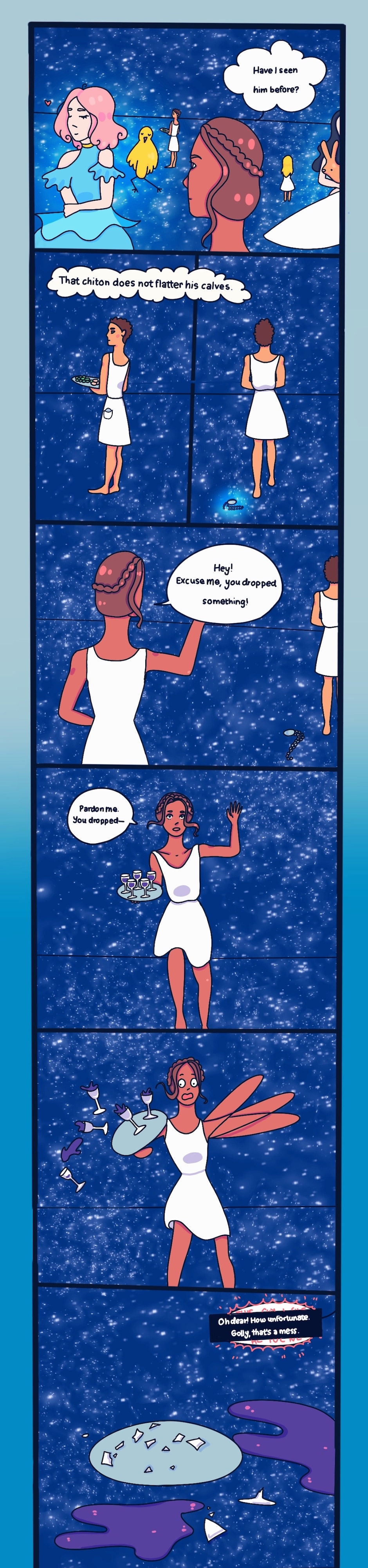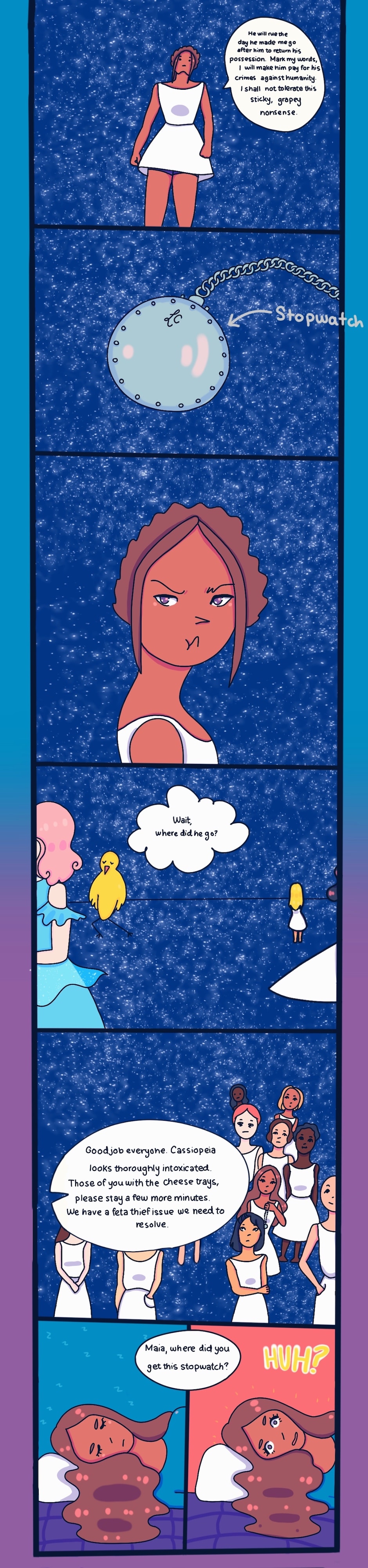 Maia, a girl who dreams of the stars, literally. When she falls asleep, she serves the constellations, meeting Ursa Major, Orion, Cassiopeia and more. They pay pretty well, too.