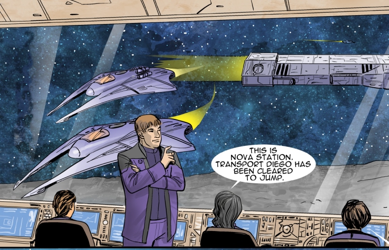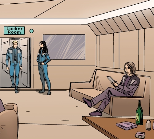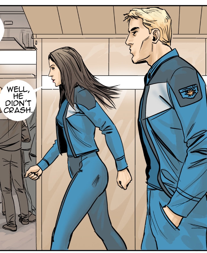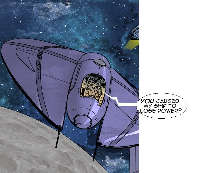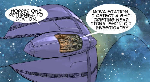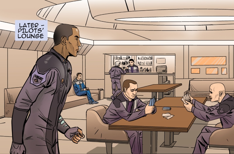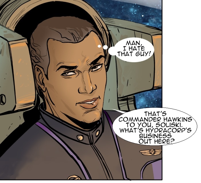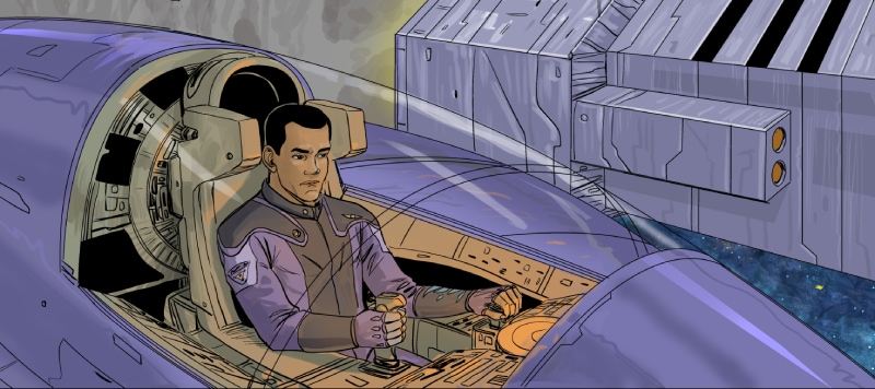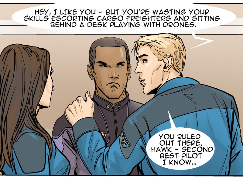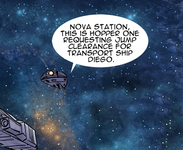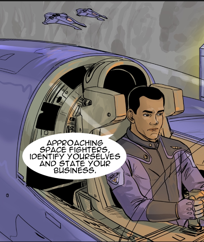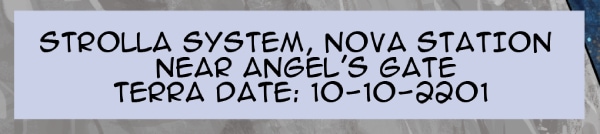 This episode we meet three of the main characters: Marcus Hawkins; Ray Soliski - Call sign: Blue-Ray; and Lita Joshi, pilot and Ray's wing man. The routine travels between the Strolla System and the Sol System has some excitement. The drifting space craft near Hydra's moon, Tibna, is investigated.