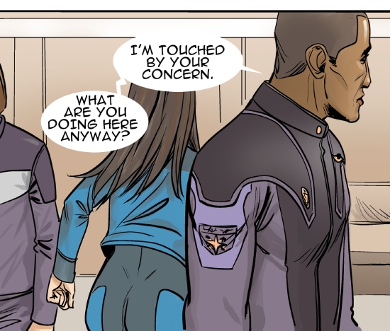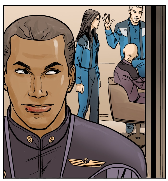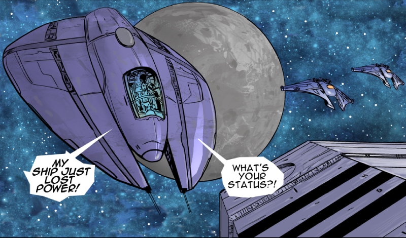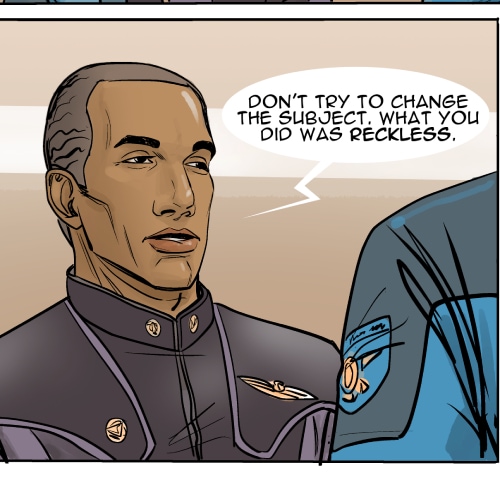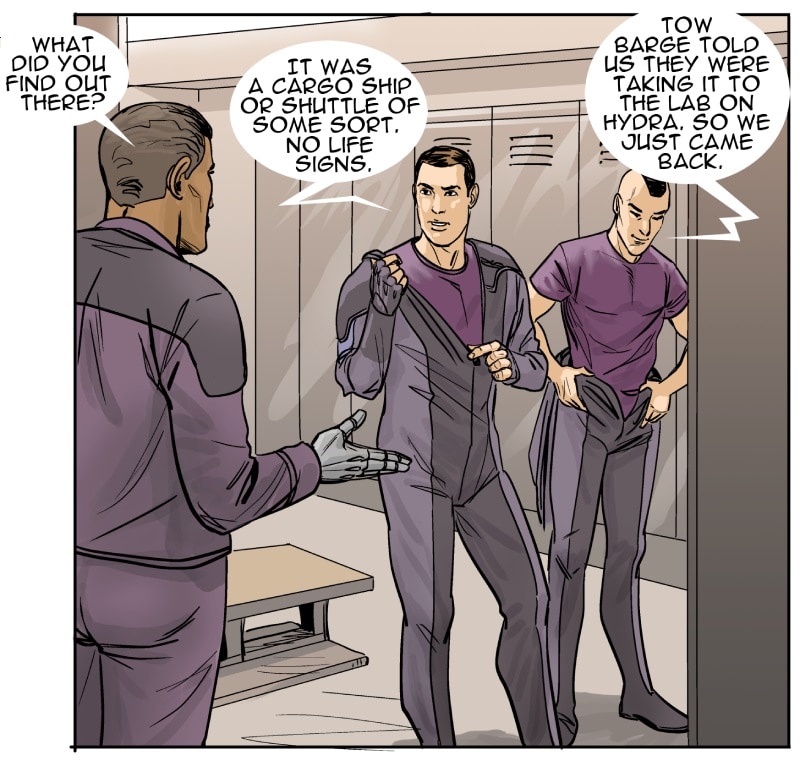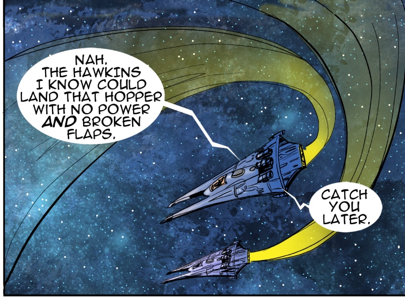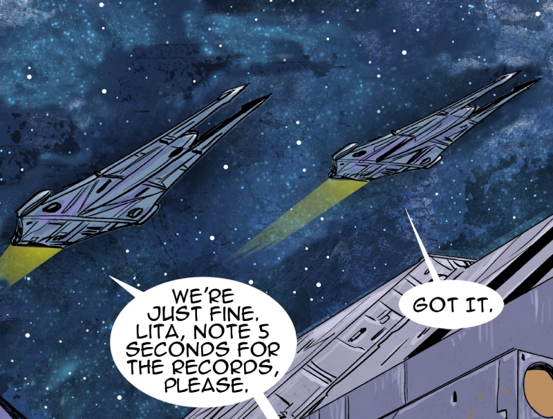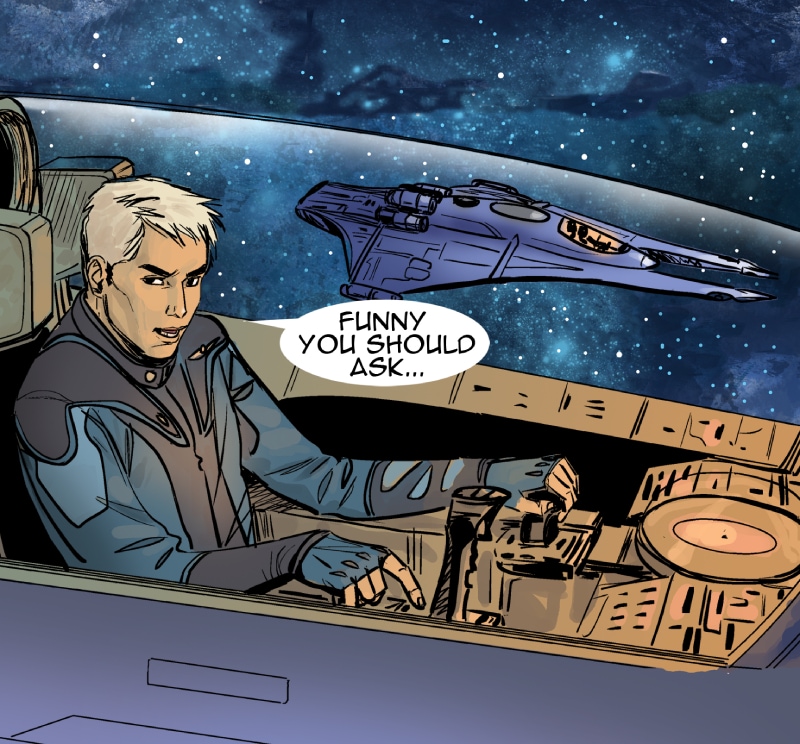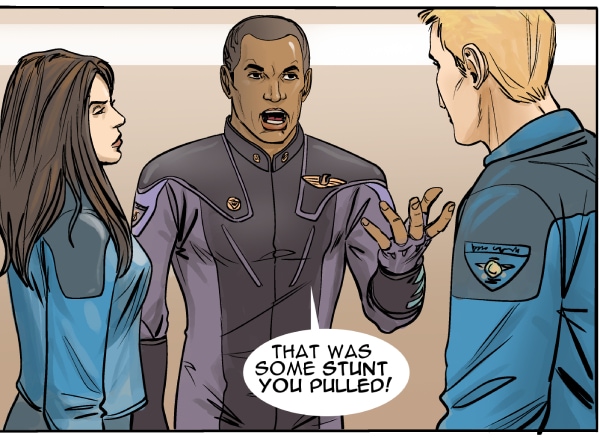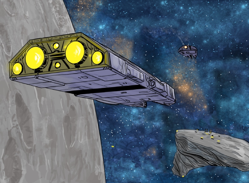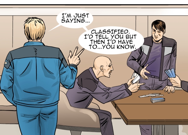 This episode we meet three of the main characters: Marcus Hawkins; Ray Soliski - Call sign: Blue-Ray; and Lita Joshi, pilot and Ray's wing man. The routine travels between the Strolla System and the Sol System has some excitement. The drifting space craft near Hydra's moon, Tibna, is investigated.