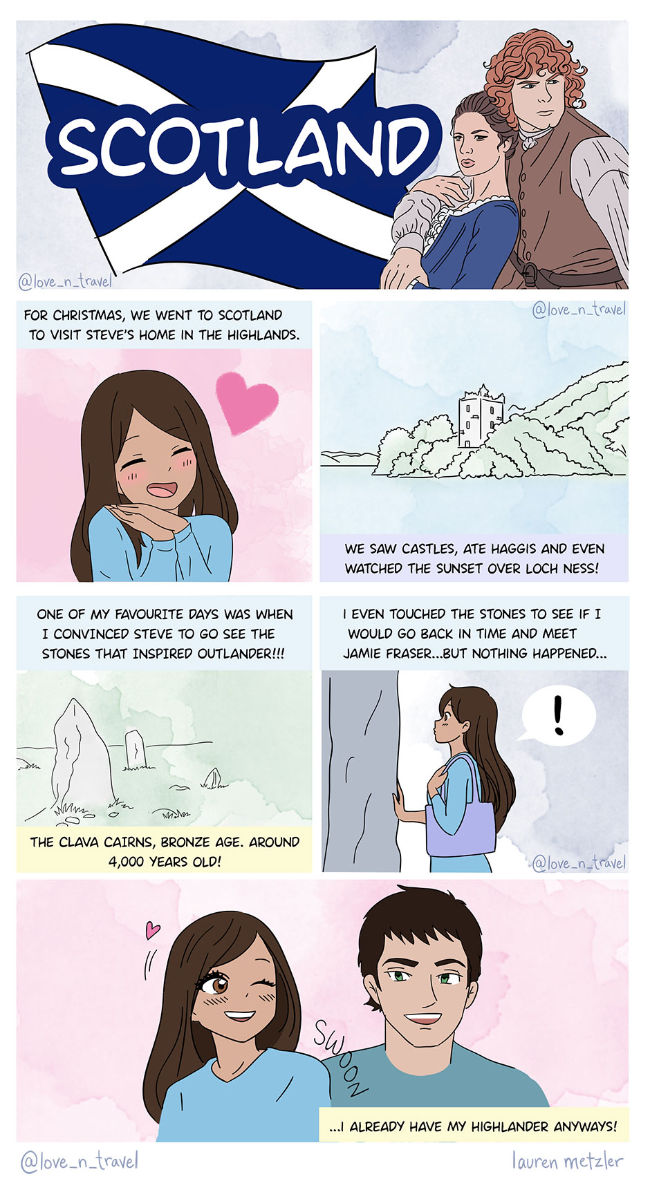 I am obsessed with Outlander, so I made this lil comic about our trip to Scotland! Follow @love_n_travel