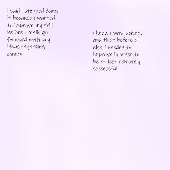A series about my experiences as a comic artist. ToTaLLy oRiGiNaL, I know. It goes all the way back from when I was originally inspired to do comics to now where I'm not totally sure what the heck I'm doing. However, I'm confident enough in what I do to share my experiences with the world so maybe I'll get somewhere on this (please give me attention).