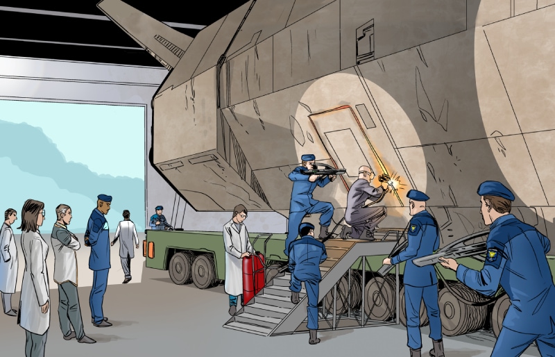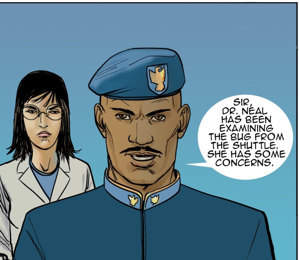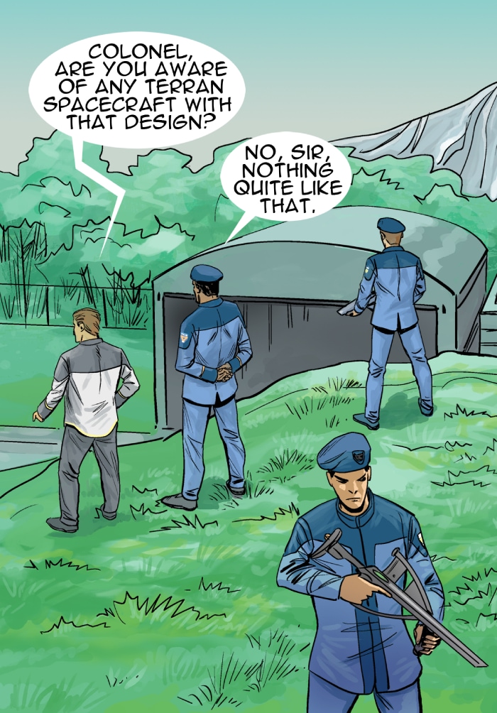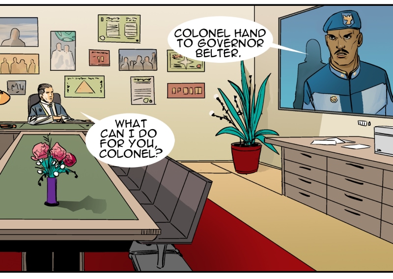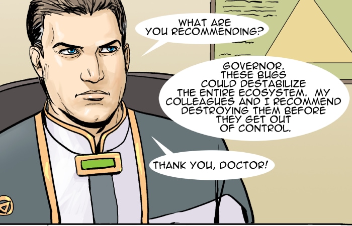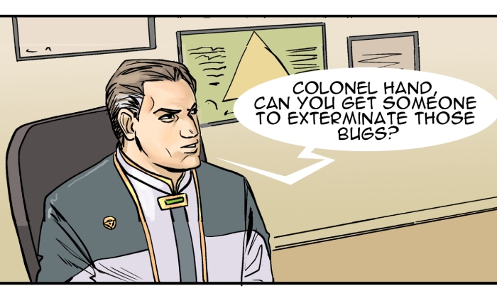 In this episode we meet the two leaders in the Strolla System - Governor Victor Belter and Colonel Don Hand. Both have very different styles. The alien shuttle is brought to the NOVA LAB on planet Hydra. Dr. Neal revives an alien bug, but then recommends its destruction. Colonel Hands sees an opportunity.