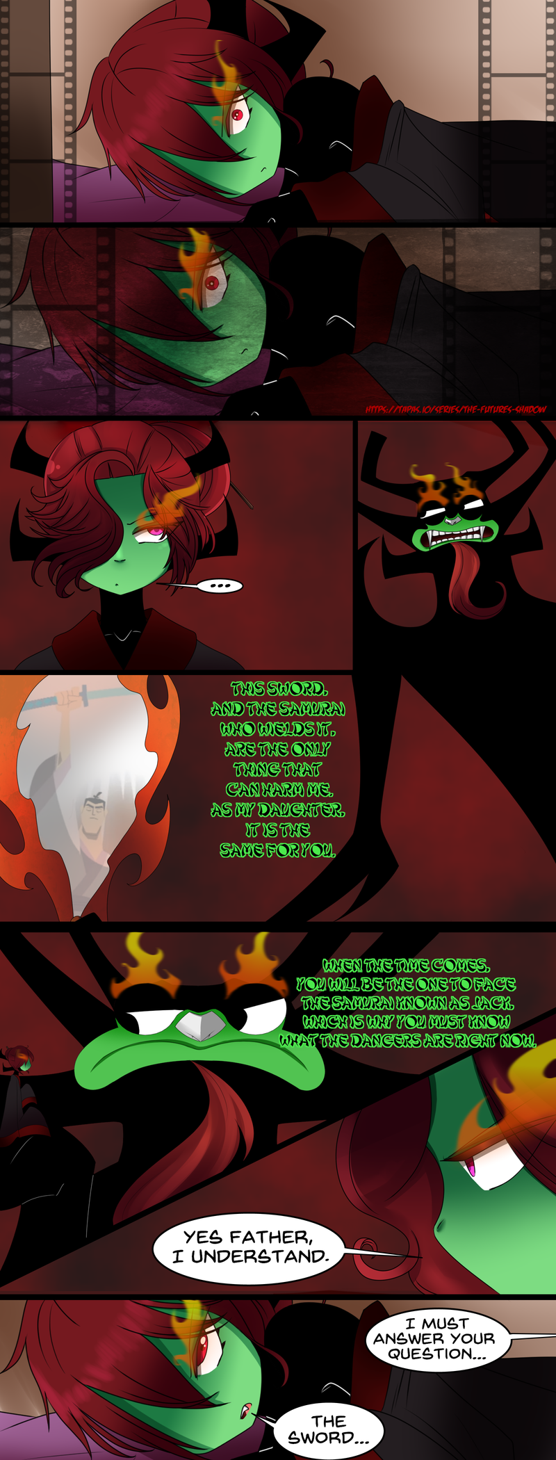 The Future's Shadow follows the SEASON 4 events of the classic TV Show "Samurai Jack" as a direct sequel. Akuma is the low-file daughter of the evil Aku, and has mysteriously been sent back in time with the Samurai, Jack. This can only mean one thing, that one of Akuma's parents is still out there, and could create havoc at any waking moment in time.