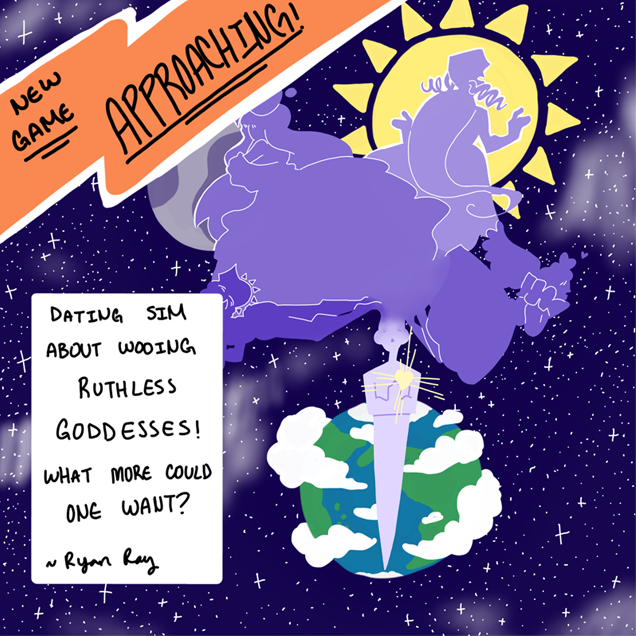 A game about travelling to the land of the goddesses and trying to make them happy. Maybe they'll turn you into a star or maybe you'll be trapped in a void for the rest of time. You never really know with these fickle beings.
