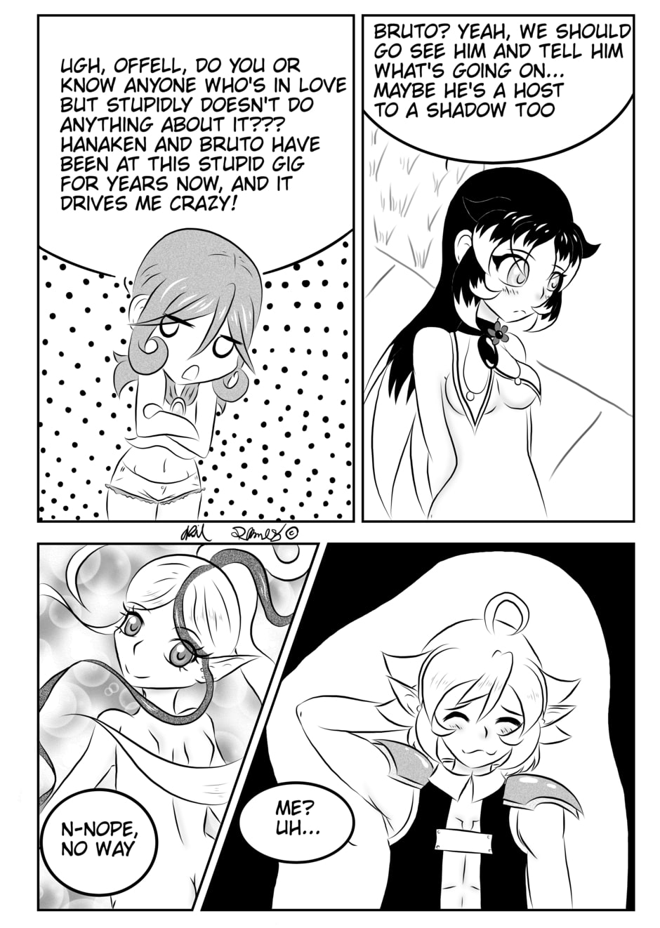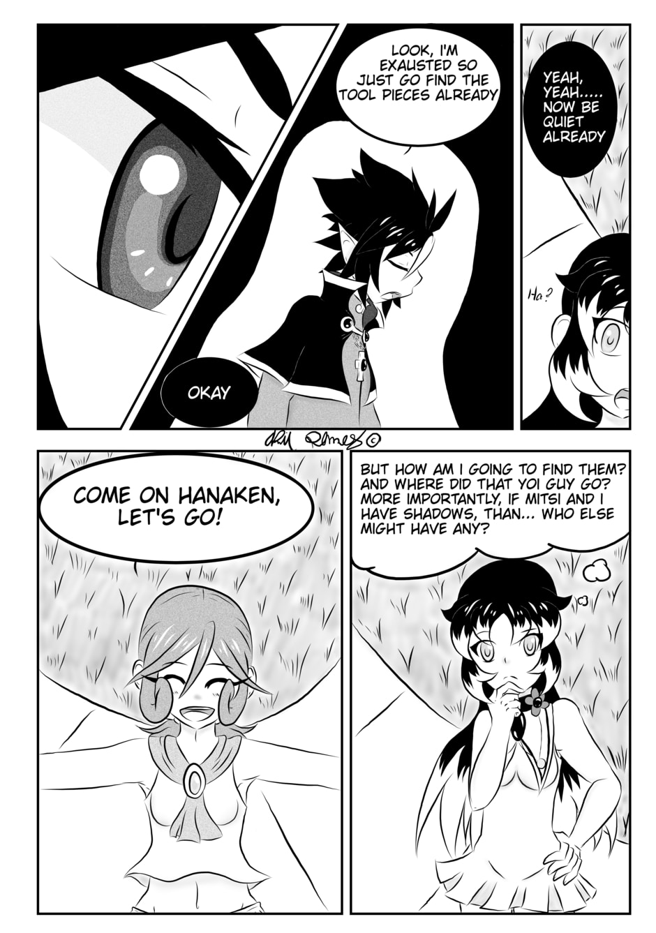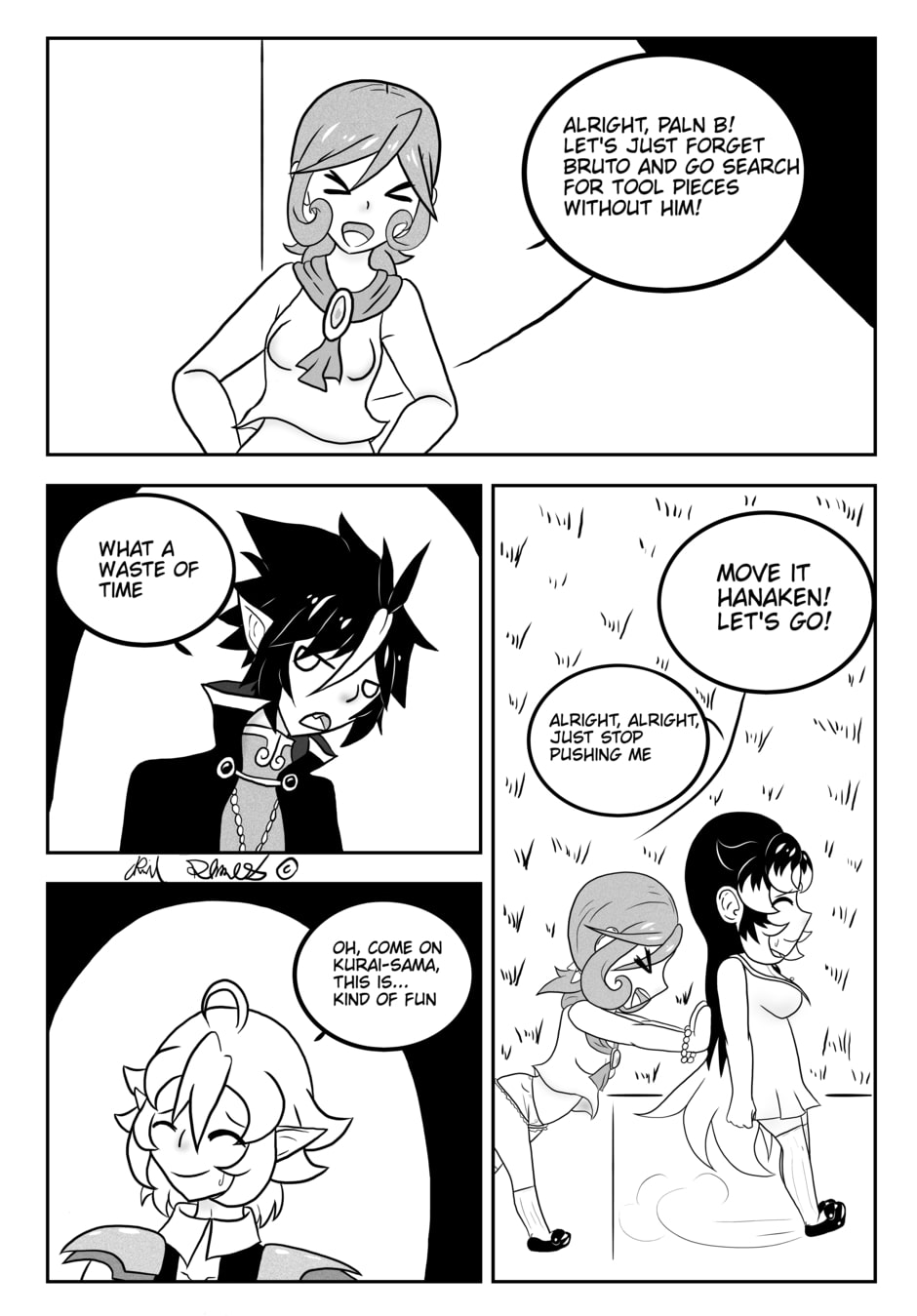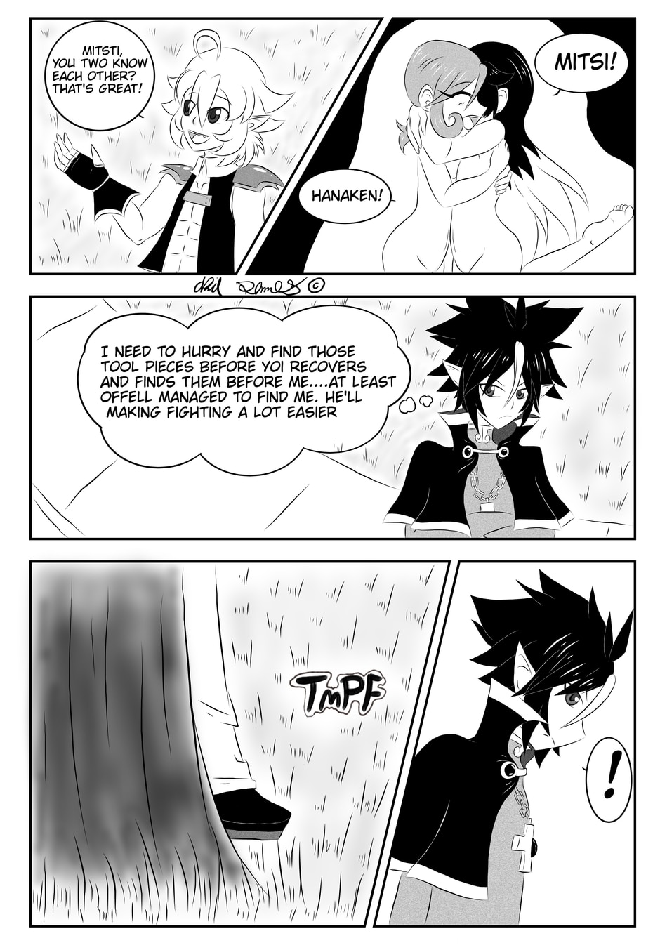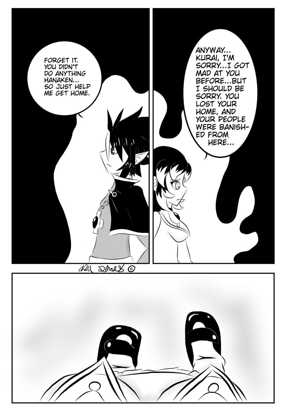 After fighting off Yoi's troops, Hanaken and Kurai meet up with Mitsi, Offell's partner and Hanaken's close friend