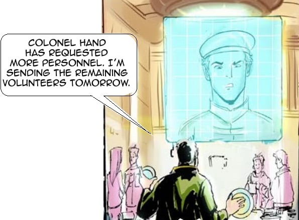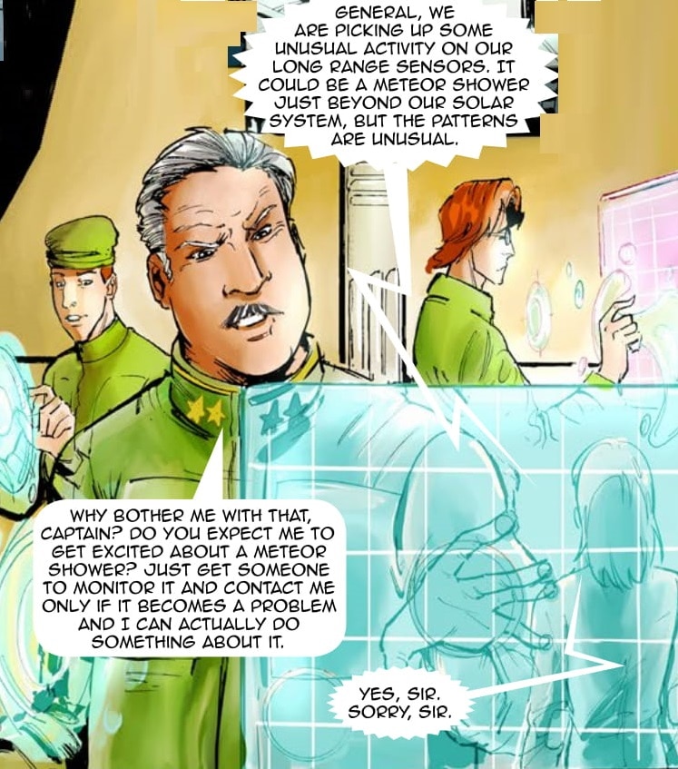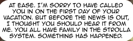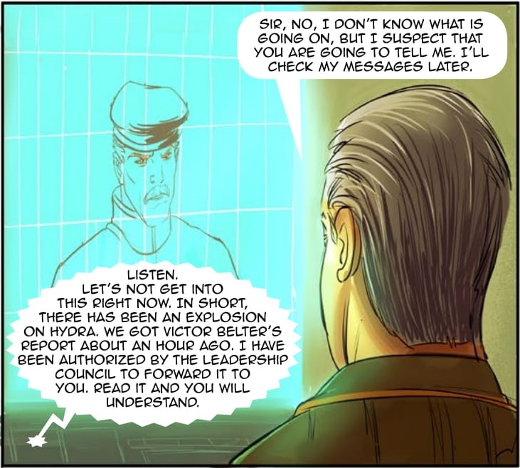 Per Colonel Hand's request after finding the shuttle, General Strickland prepares a supply run and new volunteers to the Strolla system. However, he learns about the crisis on Hydra and the leadership counsel has Strickland deal with it. As he transmits orders from the Leadership Council to Belter and Hand, Strickland gets more bad news. The Solar System is being Attacked!
