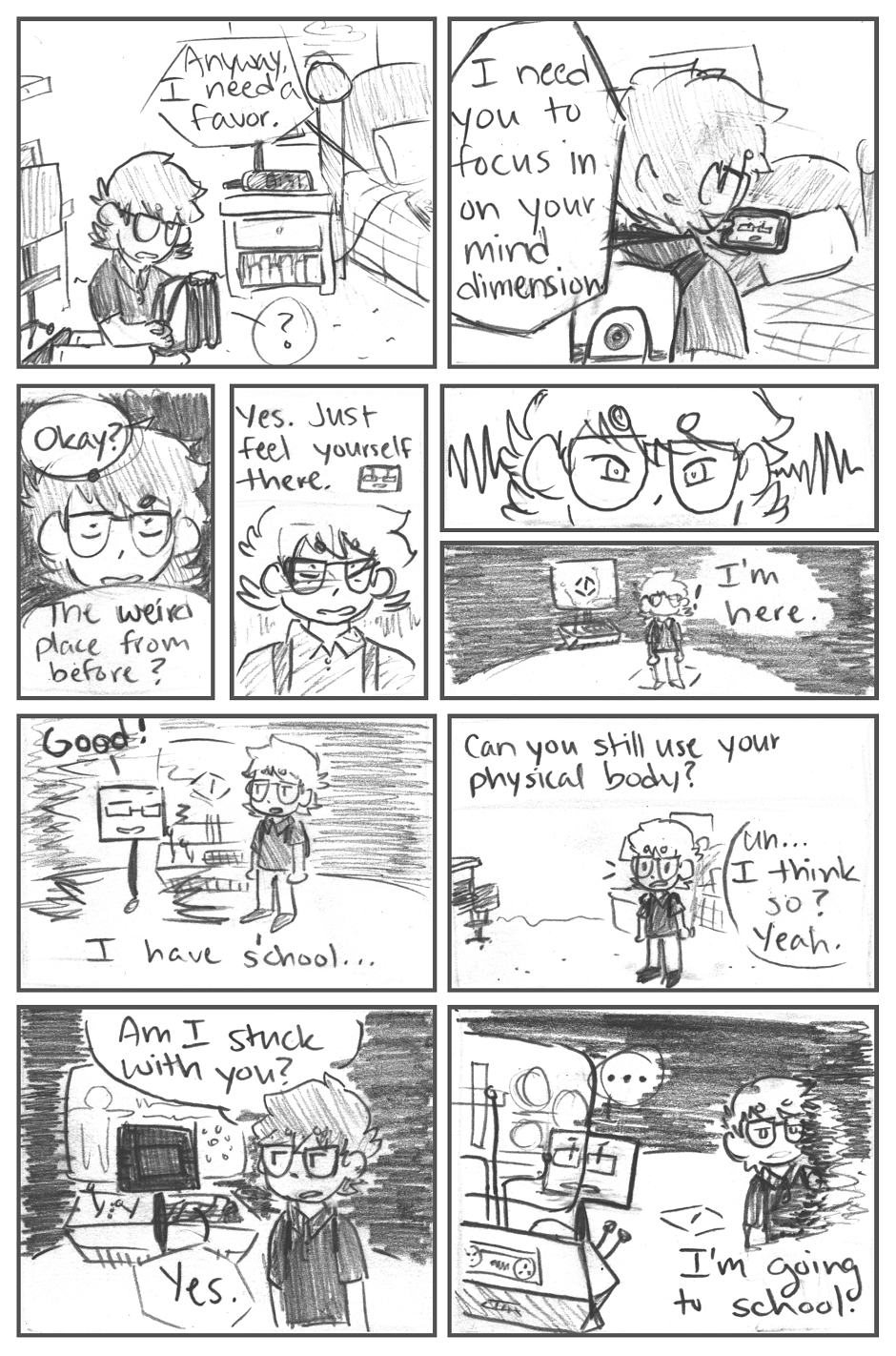 Caleb has so much apathy, but hey the mind dimension is safe! (for now...) Also! Are these panels better, or should I keep doing them by hand?
