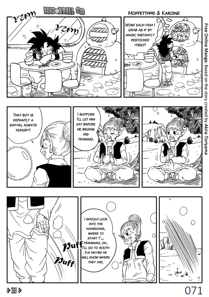Dragon Ball SQ is a fanmade no profit manga originally created by Moffett1990 and eventually redrawn first by Elyas11 than again by Dibizyota and continued on by Karoine.