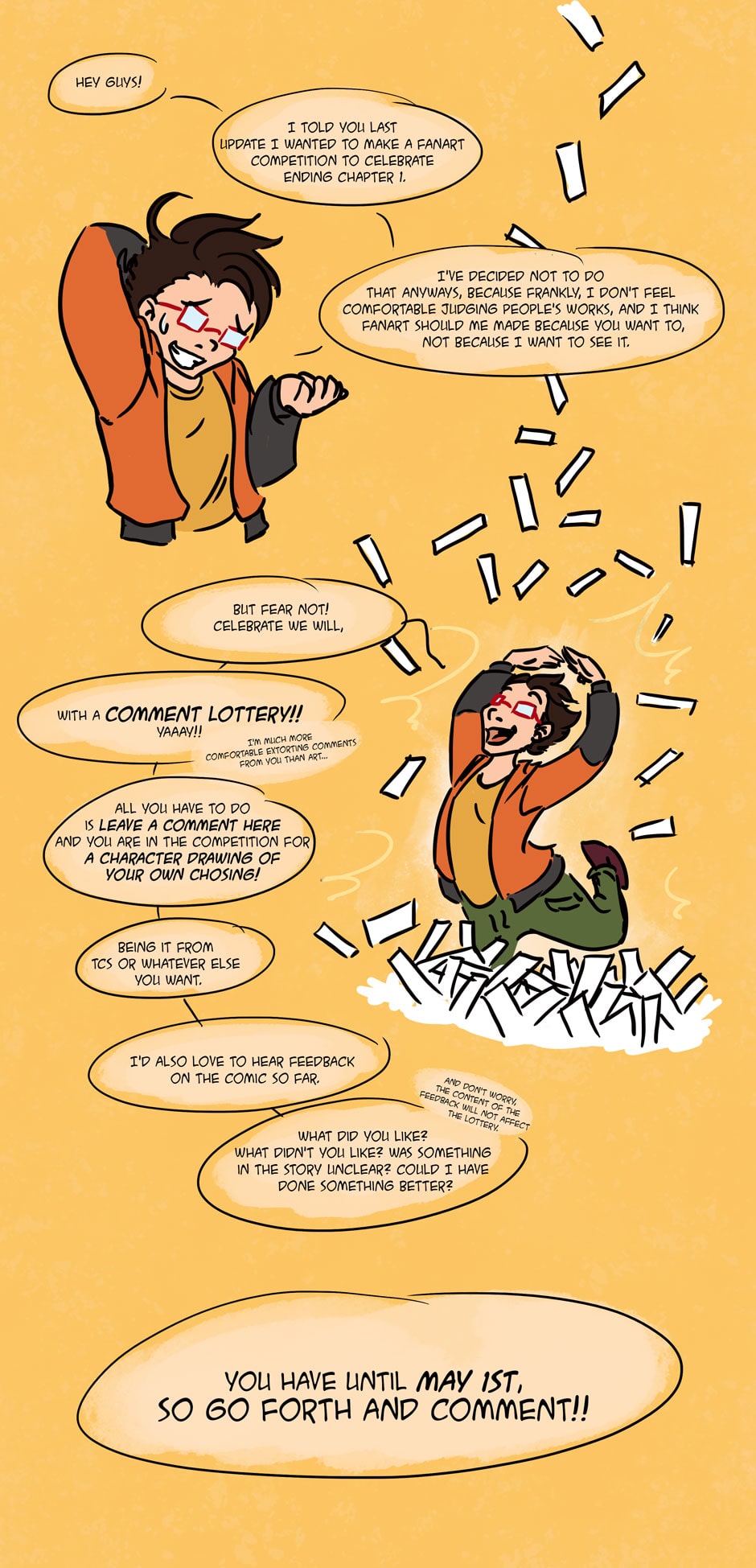 I think I said everything in the picture... EDIT: No I didn't, I said I would take a small break between chapters, it'll be back in May! ^^ ORIGINALLY POSTED: 10/04-2018