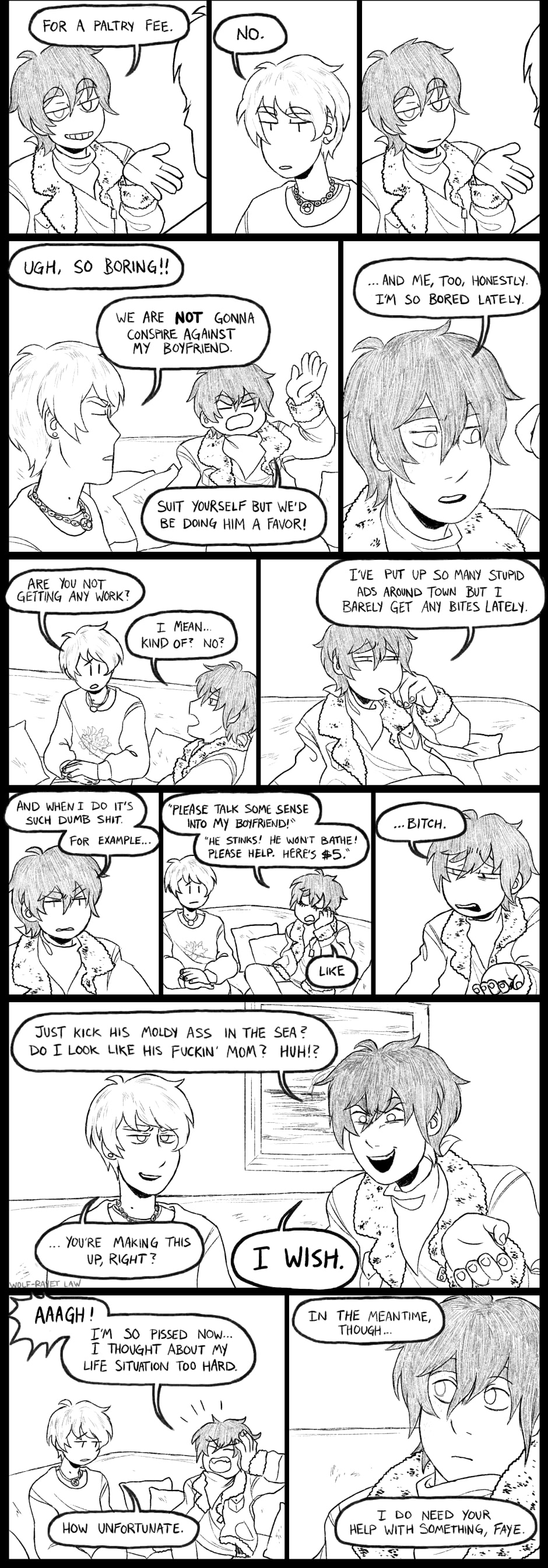 Faye is a human living in the two centuries post-flood era with her adoptive Avian family. Due to the still eclectic state of the world, she works eclectic jobs, taking requests, offers, and challenges for mostly anything you can throw at her, as long as it isn't humiliating, and most importantly, as long as it pays.