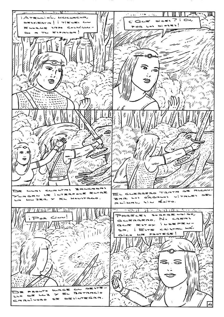 Yhagan se enfrenta a la asquerosa criatura que amenaza a la chica.