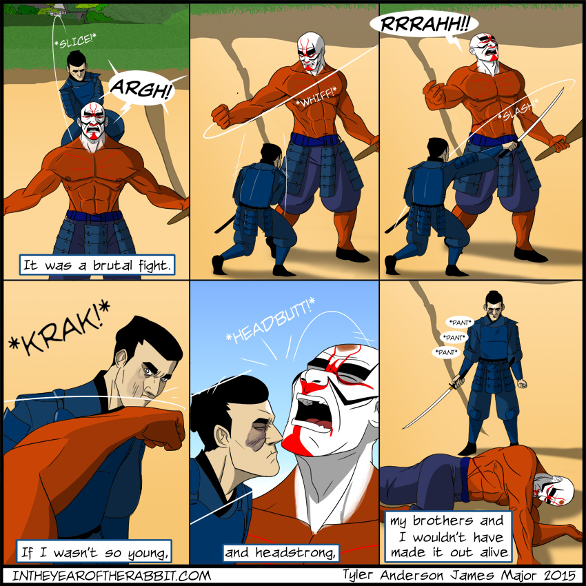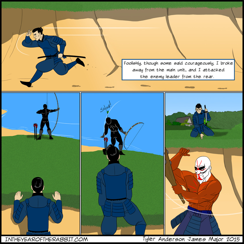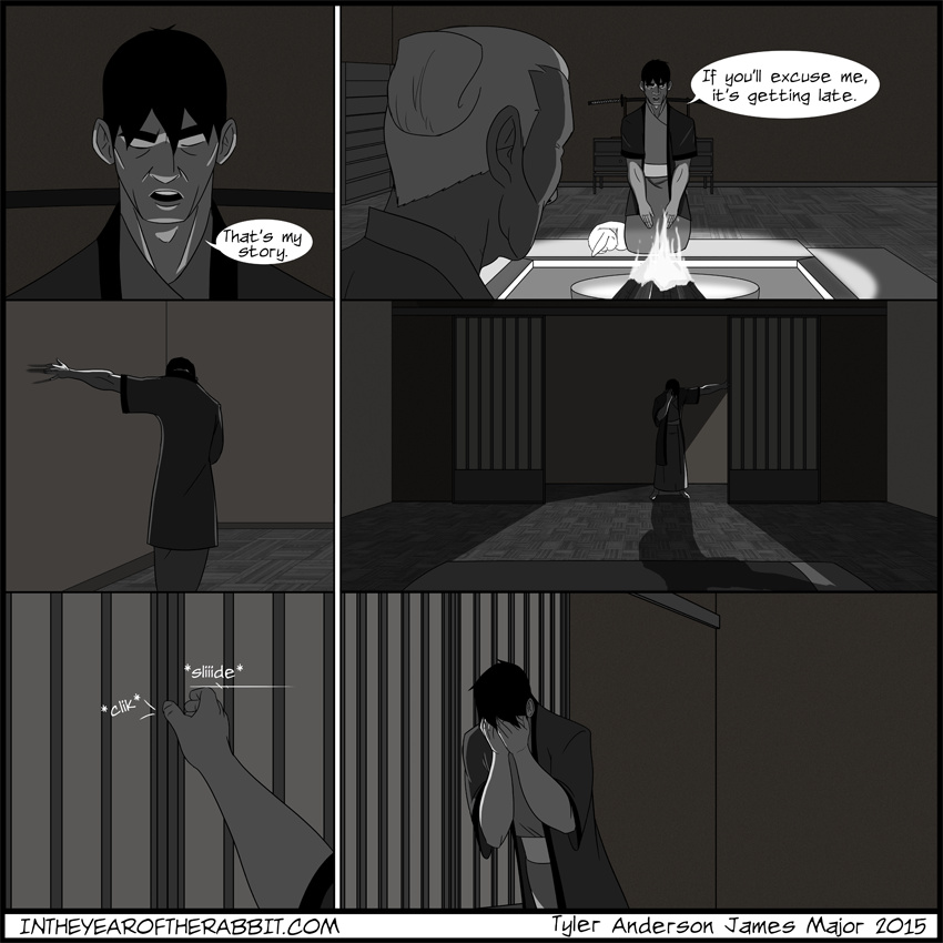In the Year of the Rabbit follows the adventures of Kazuo Saito, a forlorn and dishonored samurai and his only companion, a snow-white rabbit, as they travel through Edo period Japan in search of answers. All around them, Japan is transforming culturally and socially. The arts, and sciences are flourishing, and the days of warfare are disappearing. As Kazuo stays his blade in this new era, he wanders dreamscapes filled with spirits and demons, trying to make sense of the images in his head. How are Kazuo and his rabbit tied to the visions? How do the visions shape the reality around them? While an empire flourishes, Kazuo Saito walks an often violent, mystical path that he hopes will guide him to his answers and his salvation.