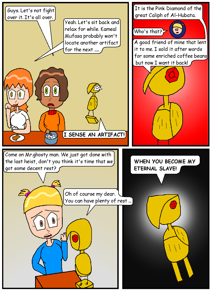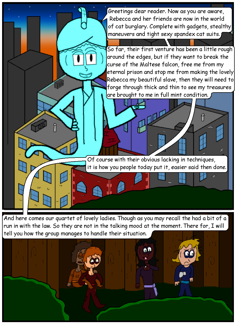 After finding a statue containing an ancient curse of an Arabian prince. Rebecca and her friends are in thrown into the world of cat burglary, finding the lost treasures of Kalei Muhammah while at the same time, dodging cops, angry museum owners, crime bosses, rabid fans, ect. It will take more then just chocolate bon-bons and a night on netflix to steam the nerves of these four ladies.
