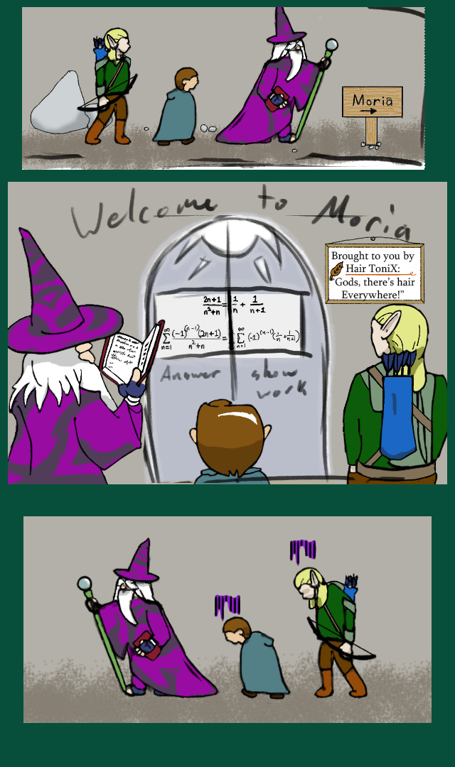 Sometimes I wonder why the dungeons of other races often have a riddle or something in order to enter. If they really wanted to protect it why not use something few actually know. If they can solve a tough equation like from calculus, then at least you know the person entering isn't dumb enough to attack the Duarves or whoever else owns the entrance.