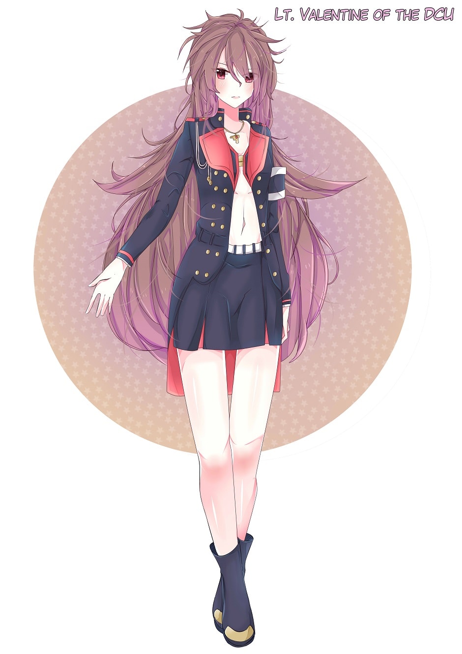 Name: Grace Valentine Age: 24 Hometown: Seattle, WA Rank: 1st Lieutenant Operatives: N/A (DCU human officer) Weapon: Glock 17 Gen4 handgun Power: N/A (human) Base: Fort. Lockhart-Eastern Front Unit: 6th Scout Corp