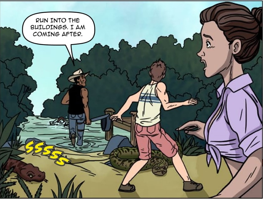 Victoria and Scott continue their journey up the river to try to reunite with Victoria's uncle Rudy. However, they run into trouble. Trouble spelled with a capital "SSS".