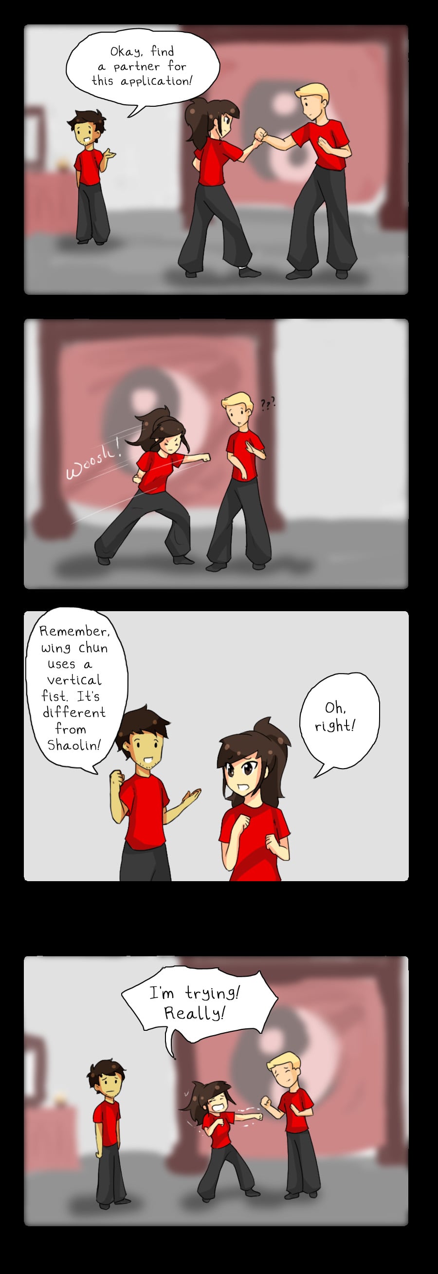 When I was younger, I studied Lan Shao, which had more "aggressive" forward strikes; very rarely would you back up. Wing Chun was a bit of a gear change with keeping your body squared off with your opponent and mostly vertical fists -_-;;