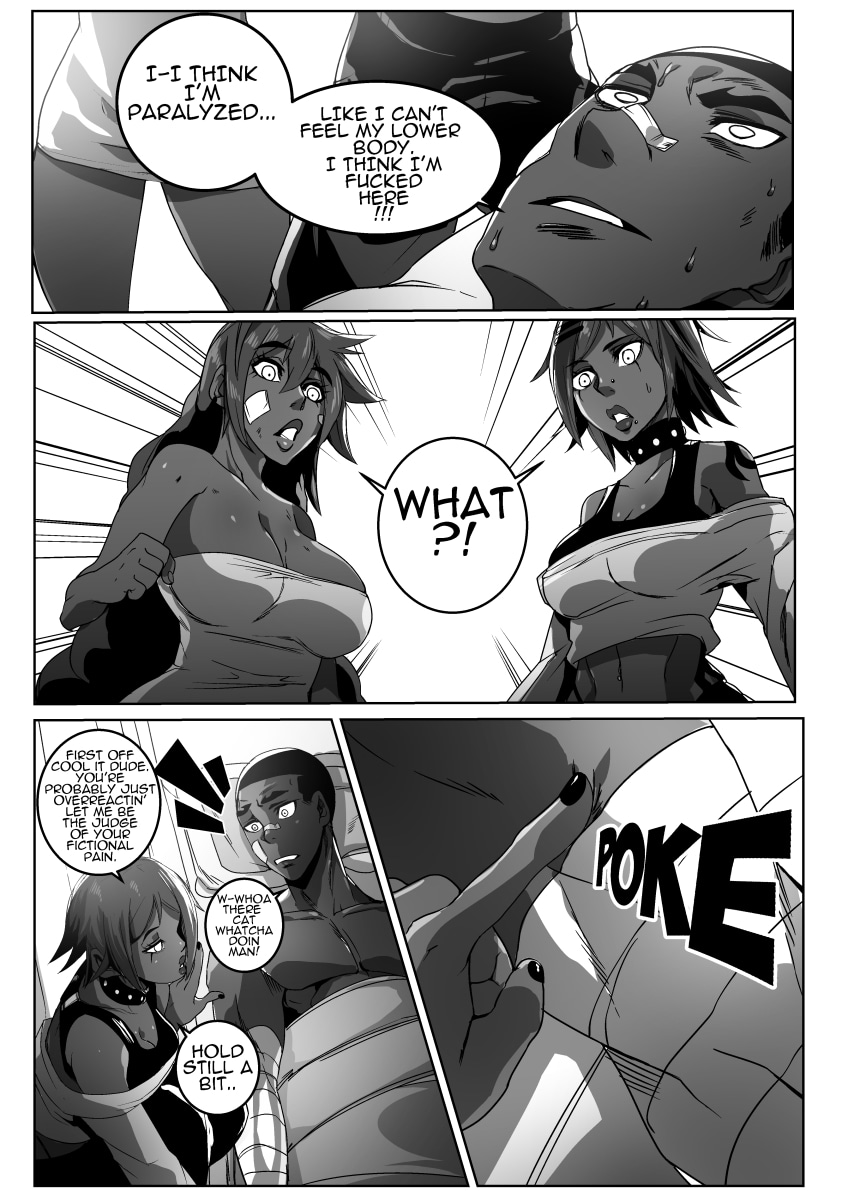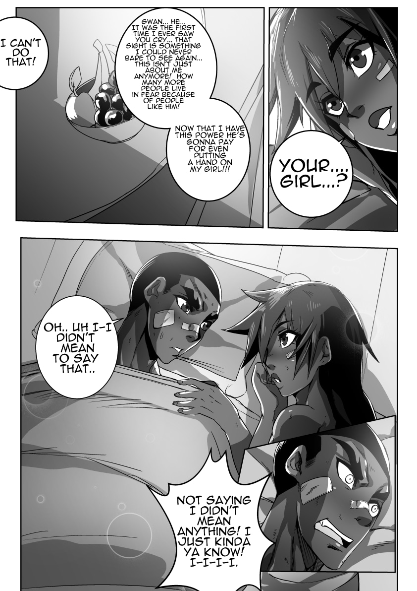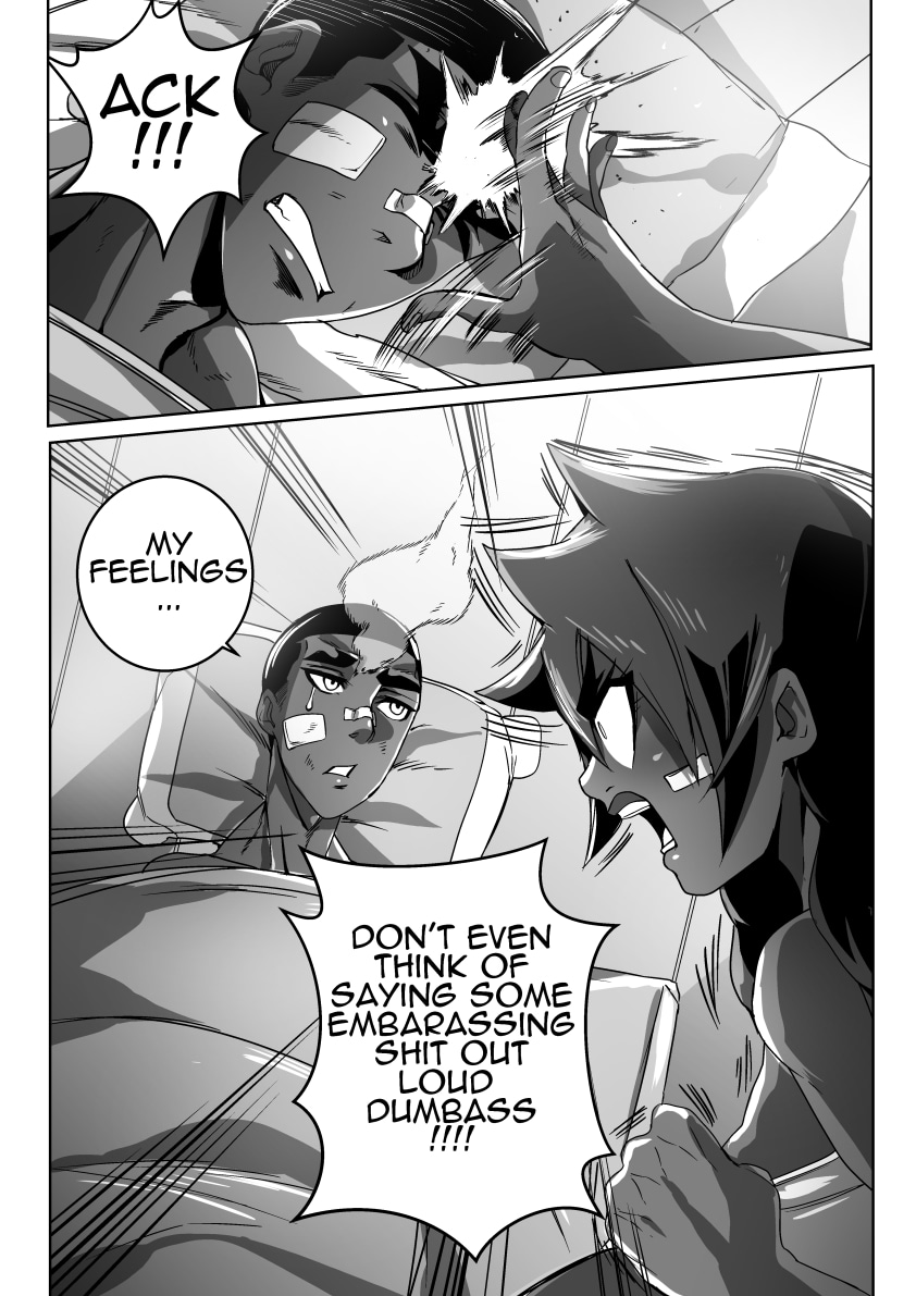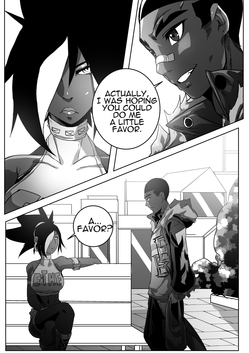 big improvements all around especially with the character relationships. this chapter was so real and cute. Nice getting to meet his family and that new girl is gorgeous can't blame him. Can't wait for this to continue. Btw my fave parts r "because im a fucking asshole" too good man lol. Also love g's friend he's adorable. really dig the character dynamics and the fight scenes keep it up YOU ROCK! BTW I LOVE your colored characters. there so stylized. ever thinking of selling the colored edited version of this. or Fixing it up and selling it at cons? we would love to help!