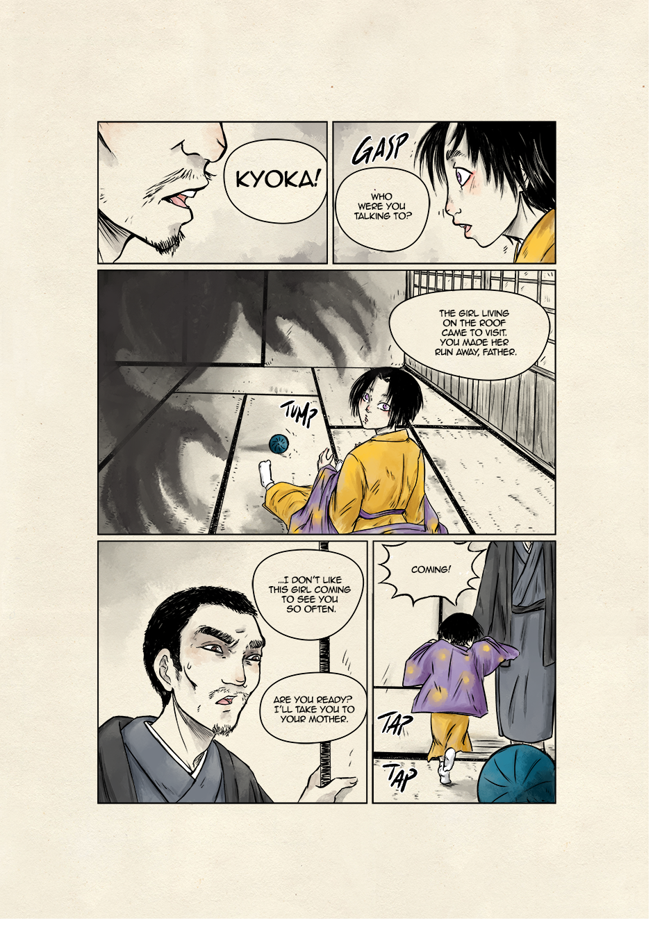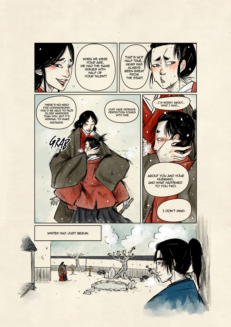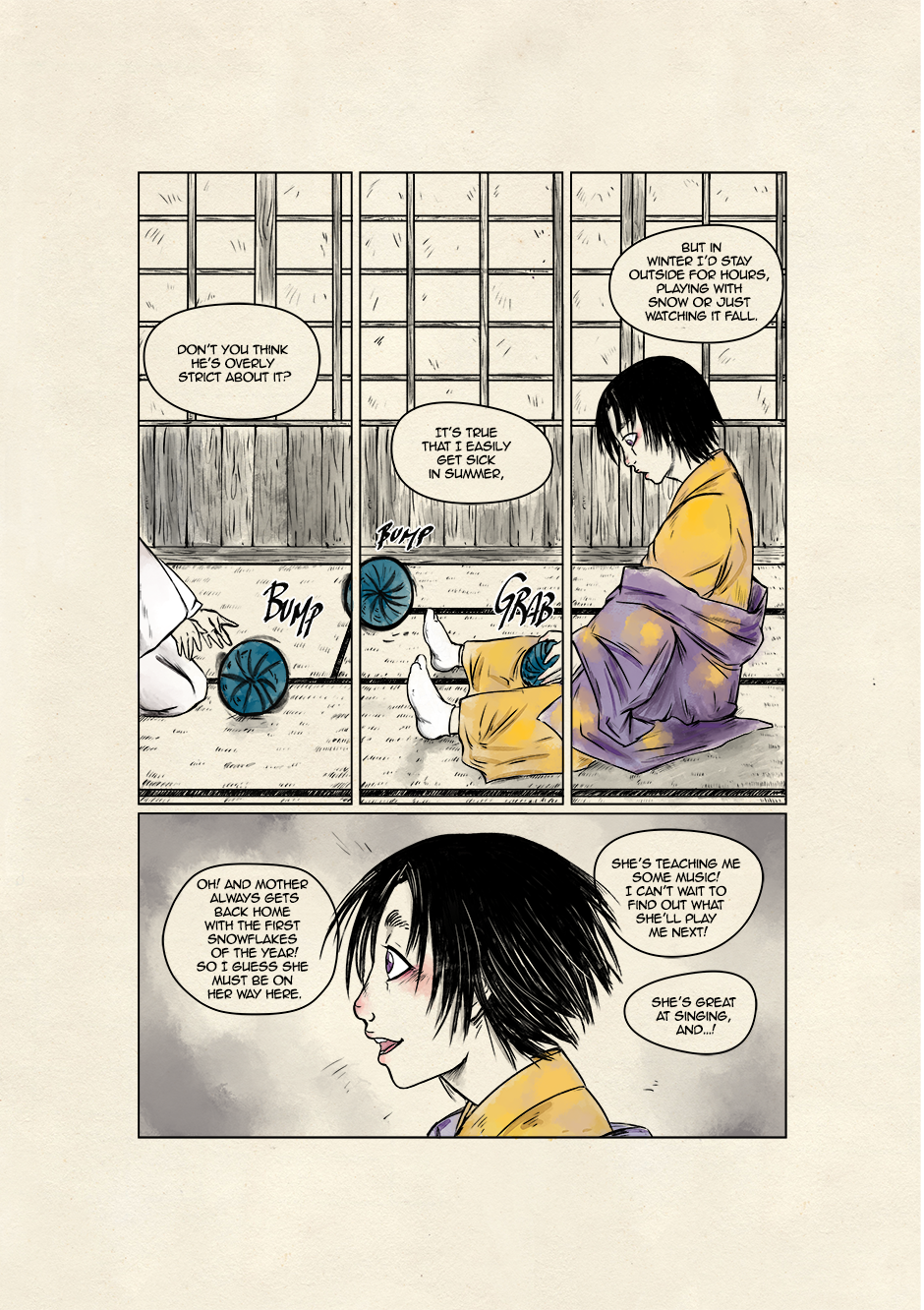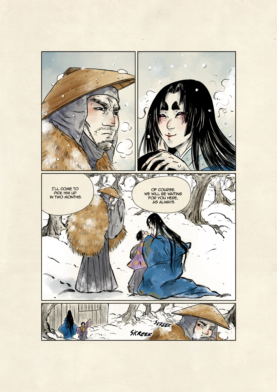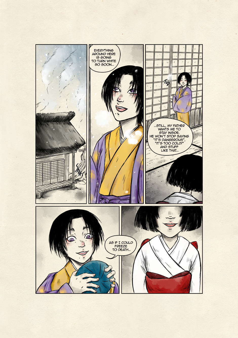 In ancient and violent times, Akari, son of samurai lineage, and Kyoka, a boy who dreams to grow up to be a great musician, move their first steps toward a world of striving demons and vengeful spirits. They are both unaware that their destinies are bound to collide to give new life to the ancient legend of the Great Exorcist and his loyal Guardian. Still, their tale starts right there, under that winter's first snowfall.