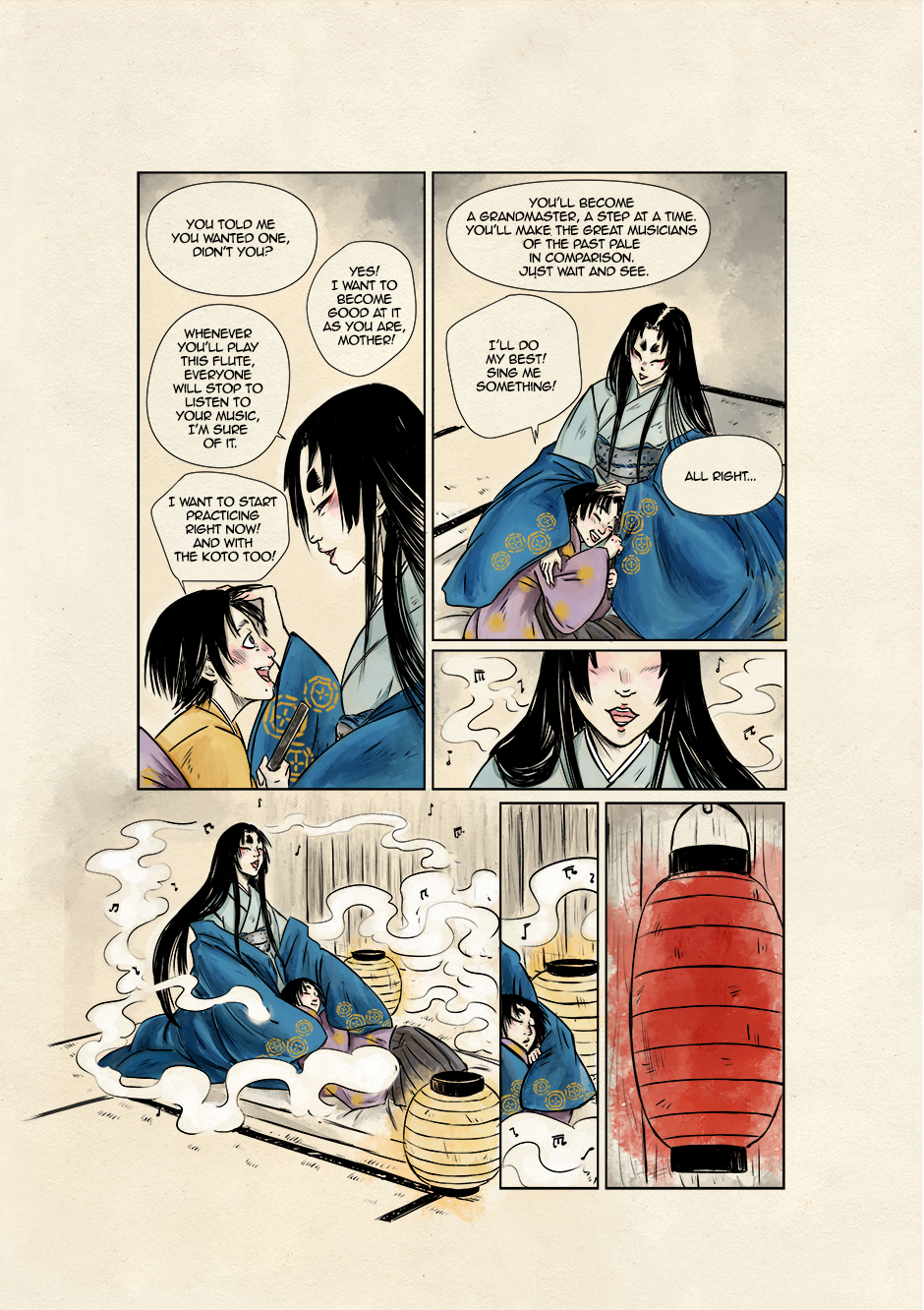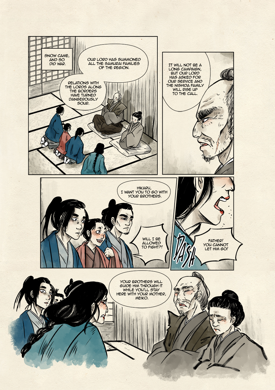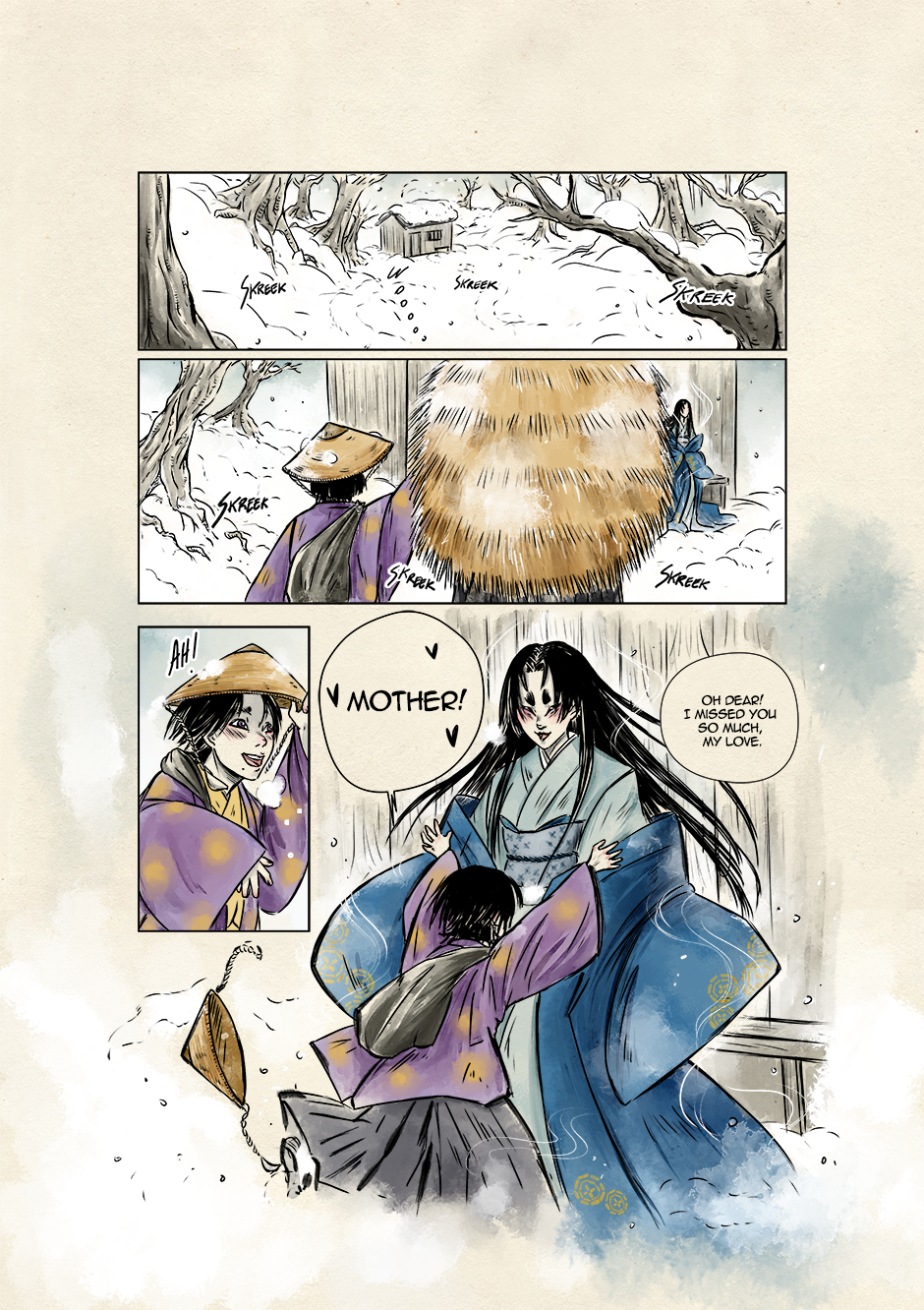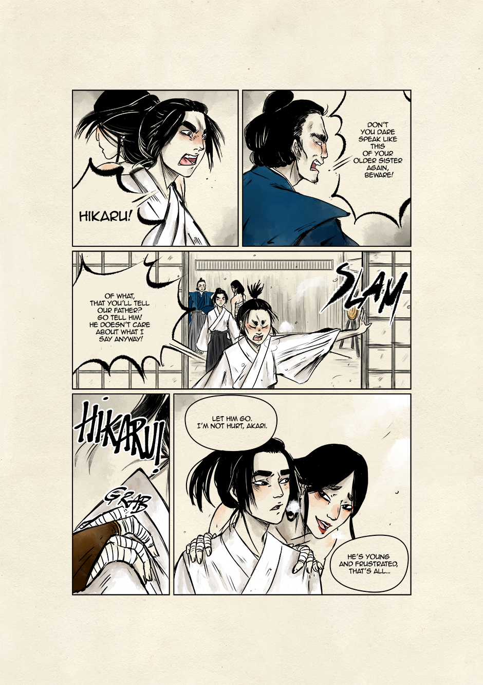 In ancient and violent times, Akari, son of samurai lineage, and Kyoka, a boy who dreams to grow up to be a great musician, move their first steps toward a world of striving demons and vengeful spirits. They are both unaware that their destinies are bound to collide to give new life to the ancient legend of the Great Exorcist and his loyal Guardian. Still, their tale starts right there, under that winter's first snowfall.