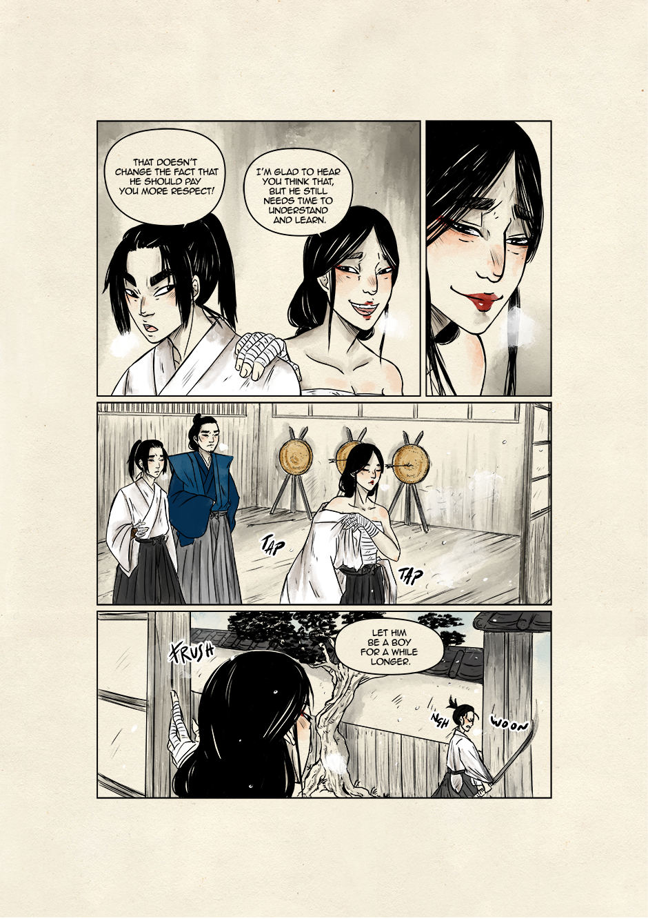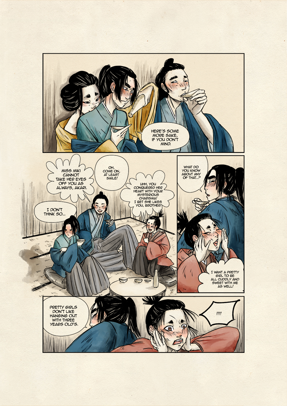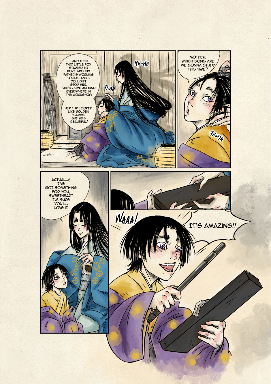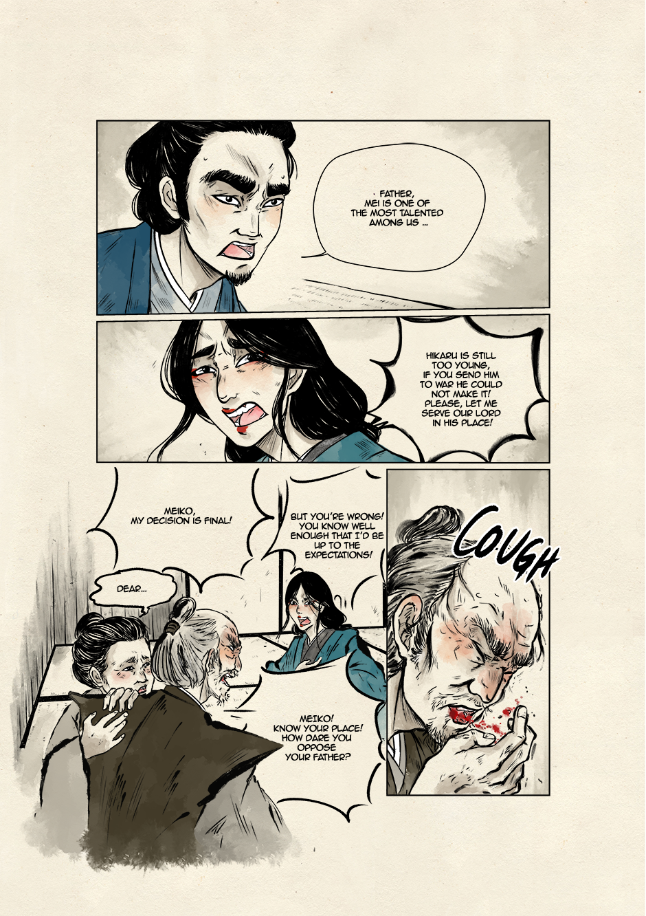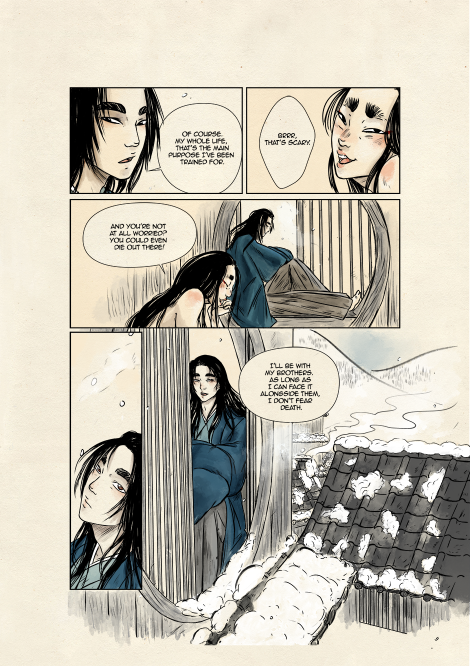 In ancient and violent times, Akari, son of samurai lineage, and Kyoka, a boy who dreams to grow up to be a great musician, move their first steps toward a world of striving demons and vengeful spirits. They are both unaware that their destinies are bound to collide to give new life to the ancient legend of the Great Exorcist and his loyal Guardian. Still, their tale starts right there, under that winter's first snowfall.