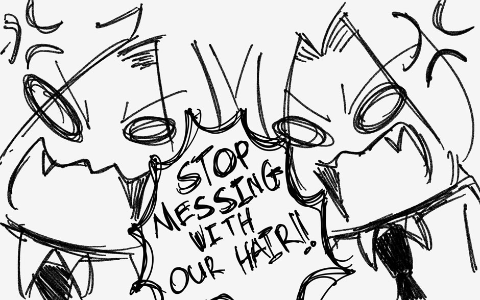 Got bored and go mess the twin's hair. They got mad though...