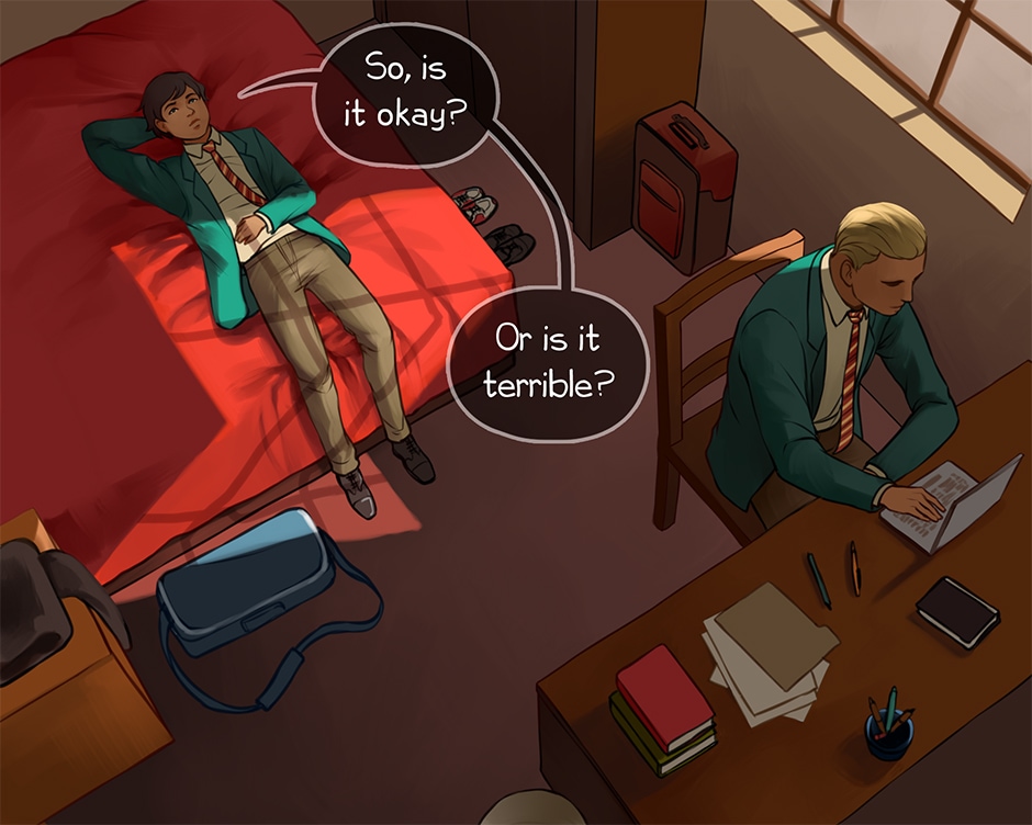 Adrian Pembroke is a boy with a penchant for playing guitar and running headfirst into trouble. After graduating from high school, he loafs around town with a questionable group of friends. His parents put their foot down after his mischief turns into a run in with the cops. He finds himself shipped off to Mercier Academy, an elite boarding college. Miserable and feeling utterly out of place, Adrian soon lands himself into trouble. He is rescued from his own antics by Acario Ambrose, the resident golden boy of Mercier. Appearances are deceiving, and Adrian learns a great deal more about himself and his new friend than he ever bargained for.