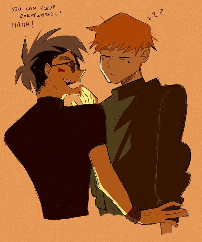 "You can sleep everywhere! Even in my- um... Nevermind" °/////°