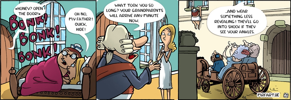 In Dutch, his albums are published by Syndikaat. Here I,ll try to share his antics from the very beginning of crude, simple strips to, errr, slightly better ones. And maybe I'll even share some of the bigger stories later on.
