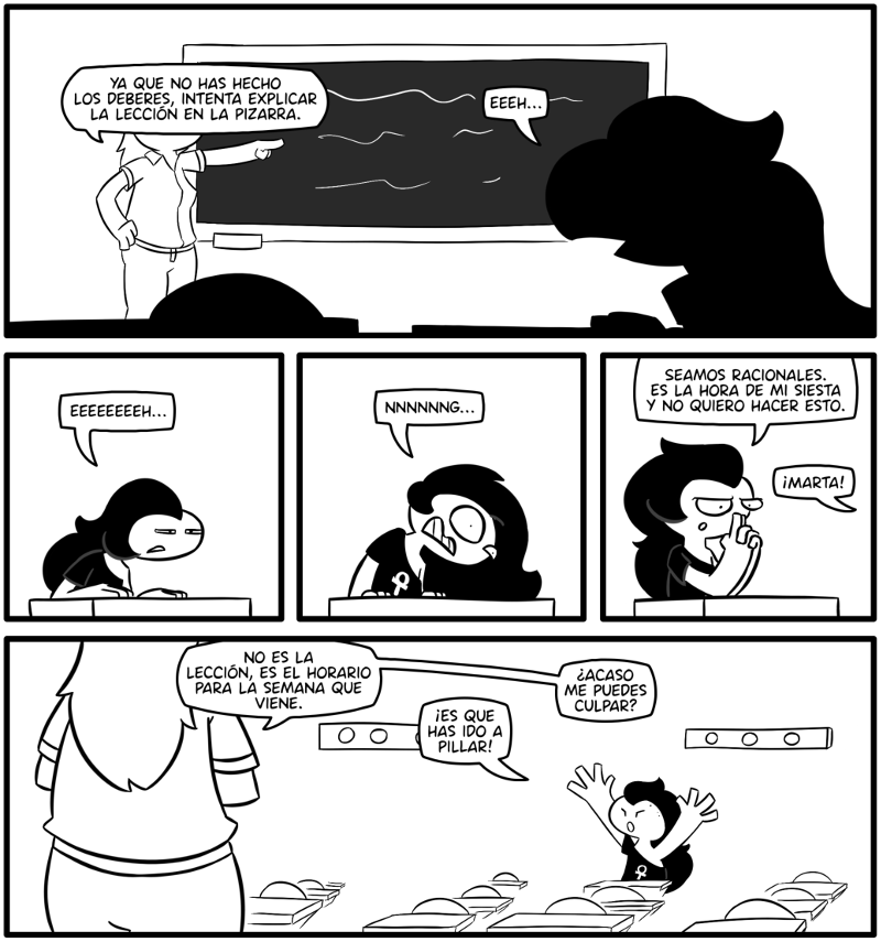 Por como fuerza la vista, creo que el principal problema de Marta no es que sea mal estudiante, claramente es miope...