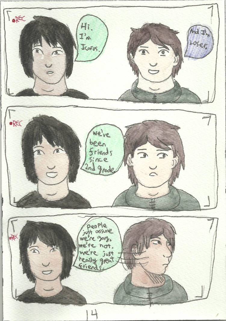 I designed Icarus to be a little emo and Loser to be a deer-in-the-headlights type guy. Icarus is the younger guy, but he takes care of Loser.