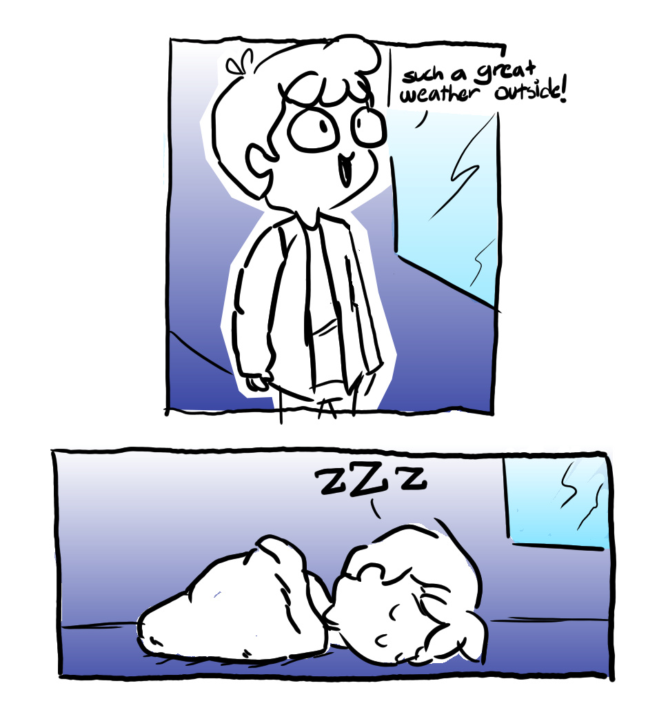 You know, those days. Edit: I did not go with the original sketches, that is why I accidently draw looking cross and not out of the windows >-<