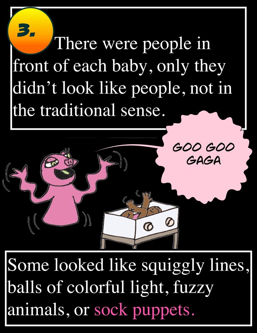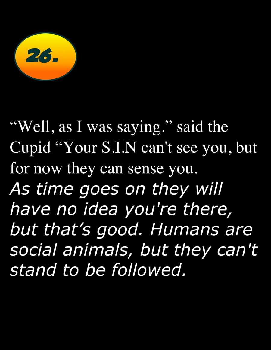 Everyone has an invisible Guardian angel, who are shape shifters that pick their own form. Which can be anything from a person, animal or object depending on the personality of the person they guard.